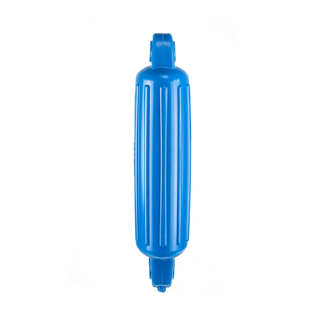 Molded from a lightweight polymeric material that is soft to the touch and easy on hulls...but resistant to UV, chalking, splitting and crushing. Double-molded eye ends for extra strength. Seamless one-piece construction. Oval shape and ribbed sides resist rolling against hull.