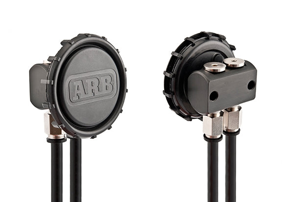 A differential or axle breather serves the important purpose on a 4WD vehicle of venting the air pressure in drivetrain assemblies such as the differentials, transmission and transfer case. Under normal operations, these assemblies heat up and the air inside expands, increasing the pressure and thus the need to be vented to the atmosphere is created. When the drivetrain assembly cools down the air inside contracts and creates a vacuum. Many drivetrain assemblies are fitted with a breather from the factory. These factory breathers are usually a one-way valve mounted directly to the housing or remotely on a short tube. The shortfall with the factory breathers is that driving through water crossings creates a vacuum caused by the drivetrain assembly being cooled rapidly by the water. This vacuum will tightly close the valve shut causing air to be instantly drawn into the assembly through the seals. Many times the seals are still submerged below water, leading to the water being drawn into the drivetrain. This will contaminate the oil and possibly damage drivetrain components or your Air Locker. The ARB Differential Breather Kit is designed to eliminate these shortcomings by providing a high flow, zero back pressure, zero vacuum breather system. This is achieved with a high flow air filter within a central manifold that will allow up to four drivetrain assemblies to be vented to one central location, ideally somewhere on the vehicle that will be above the water level at all times. This kit is intended to replace your factory breathers and contains enough fittings and tubing to connect at least two drivetrain assemblies. More tubing and push-in fittings can be purchased separately to connect up to four assemblies to the central manifold.