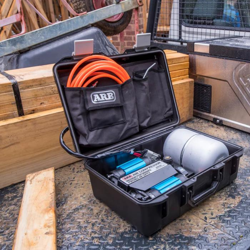 If a little is good, a lot is better, right? In the case of air compressors, absolutely. Equipped with twin motors, this powerful 12V portable air compressor from ARB is exactly what you need on those challenging trails. It's designed to offer maximum flow to off-roaders who need to air up between trails or refill after they blow the bead, and can even run the power tools needed for those extra sticky situations. The included air hose, clamp leads, and carrying case eliminates the need for you to go hunting for odds and ends before you get moving, and the 2-year warranty offers the peace of mind you demand.