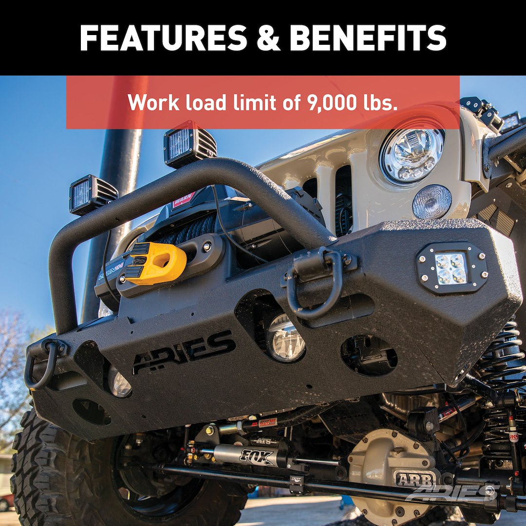 These D-rings for the ARIES TrailChaser™ Jeep bumper are the perfect off-road accessory for the serious Jeep JK owner. They feature an anti-rattle rubber grommet that compresses when the assembly is bolted onto the bumper. This tightens and restricts the D-ring's movement to not only eliminate vibrations but also to conveniently hold the D-ring in the horizontal position to be more accessible whenever needed.