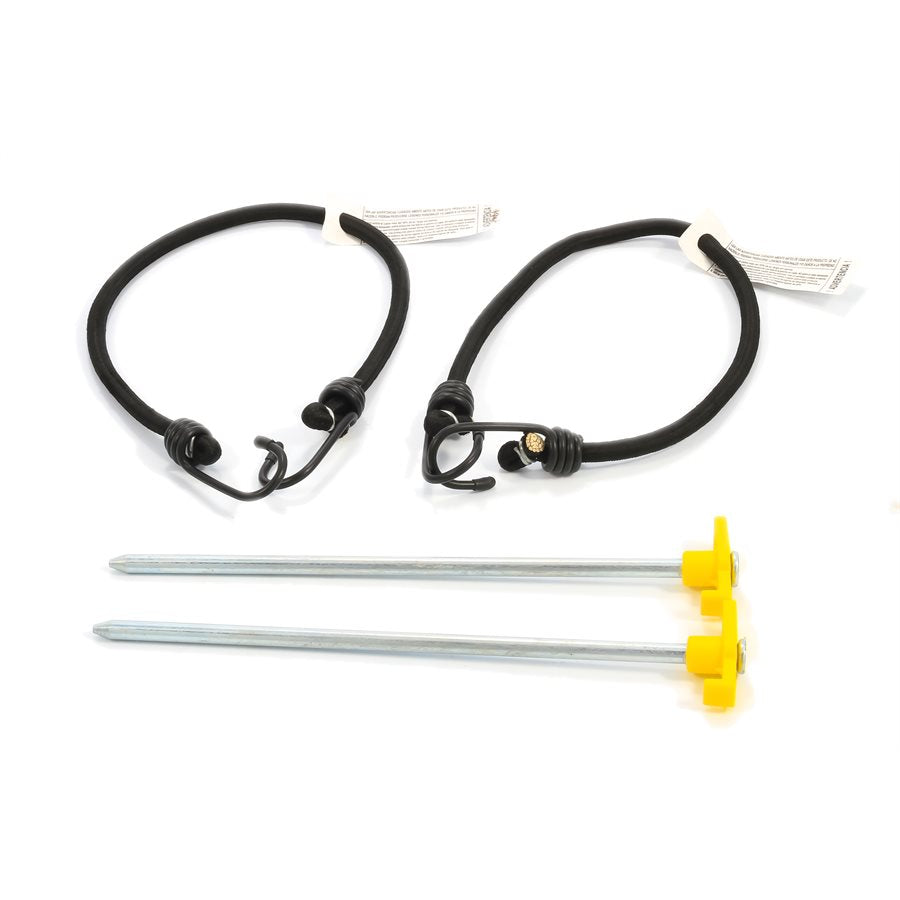 Camco's RV Awning Shade Kit provides additional shade and helps lower the temperature under your RV awning. This helps block most UV rays while protecting you and your family from excess sun exposure. The mesh fabric allows air to pass through, giving you an enjoyable breeze. It also provides extra privacy without obstructing your view. When not in use, the awning shade can retract like a curtain while still installed into the awning channel. The shade for most standard RV awnings. It is made of vinyl-coated, woven polyester mesh fabric with UV and flame-retardant protection. The shades feature reinforced corners with rust-resistant grommets. Easy to install—simply hang the shade and secure the bungee cords to the ground, using the tent stakes.