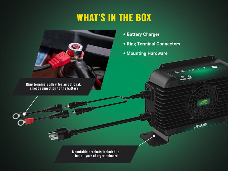 - This 26 Ampere Charger Provides A Full Charge To Your 12 Volt Battery Before Automatically Switching To Float Mode Maintaining Proper Voltage Levels Without Overcharging