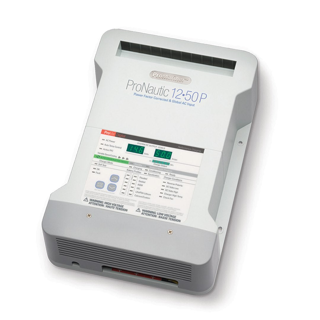 ProNauticP employs our Generation 3 ProMar Digital Performance Charging Platform which combines all digital control and softwarebased power conversion technology with global energy management features. ProNauticP addresses the trend of incorporating and using more 12-volt electronics onboard today's power, sail, cruising and sport fishing boats. Boasting twelve digitally-controlled performance charging profiles with finger tip selection, ProNauticP fully charges, conditions, maintains and re-conditions batteries while extending battery life and maximizing battery reserve power performance. Designed to provide more time on the water enjoying what you like most…boating.