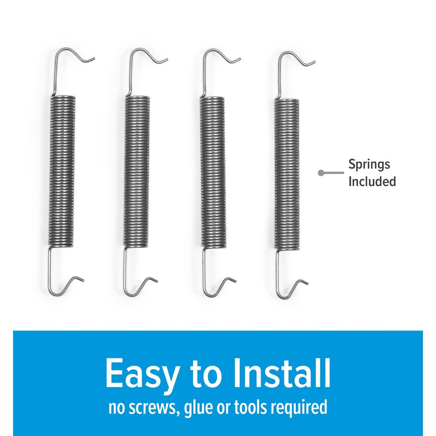 The Camco Wrap Around Turf Rug is made of artificial turf which dries quickly and helps trap dirt and debris. The improved TPE backing provides more grip between the rug and the step, keeping the rug in place and making sure it doesn't slip around the step. The Wrap Around Rug is easy to install with included springs-no screws, glue or tools required. It is weather and mildew resistant, making it easy to clean.