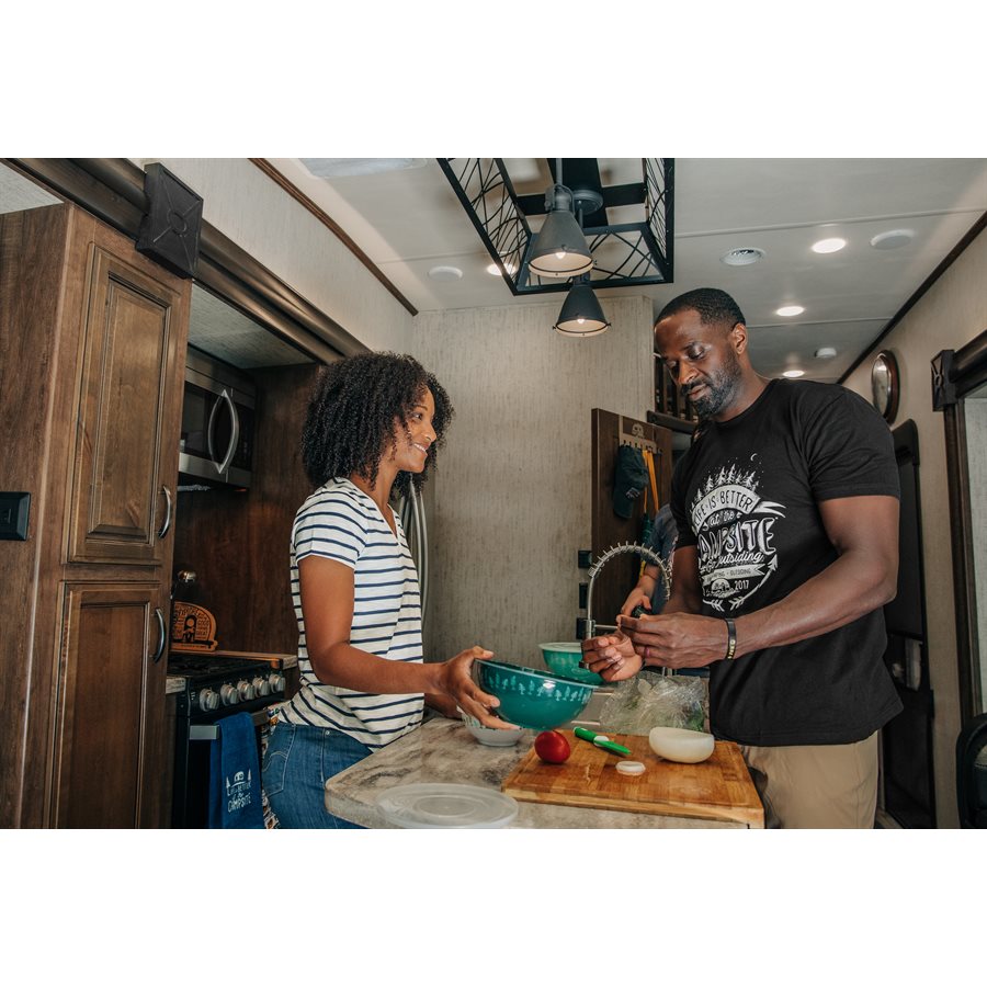Camco's Bamboo Cutting Board with Counter Edge is perfect for cutting vegetables, fruits, meats and cheese. The built-in counter edge helps keep the board flush with the countertop to hold it steady and a built-in juice groove reduces mess. This product is constructed of durable bamboo that is easy to maintain. Bamboo is easier on knife blades, helping to keep them sharper longer.