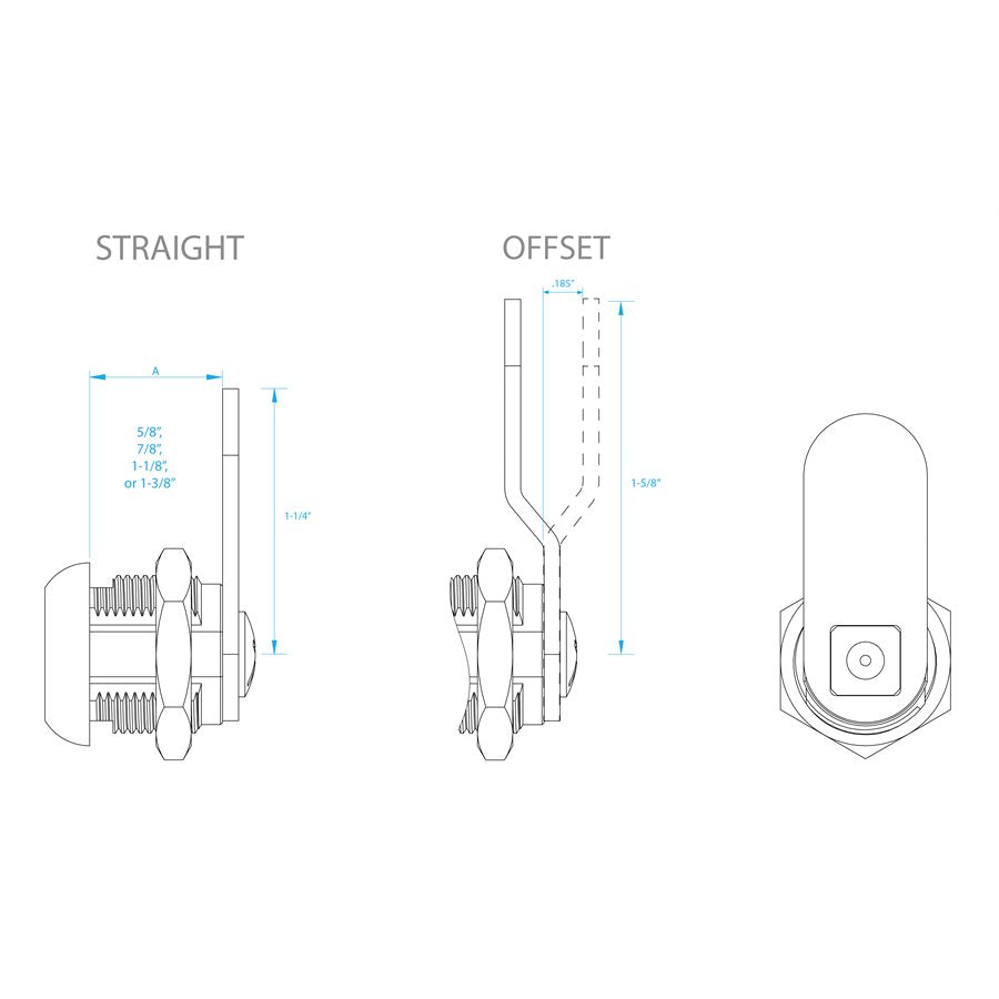 Keep your storage compartments safe and secure with Camco's Thumb Operated Cam Lock. Ideal for new or replacement installations on RVs. Easy-turn thumb operated style. 7/8 Inch Offset to CAM mount from face plate contains one offset and one straight cam.