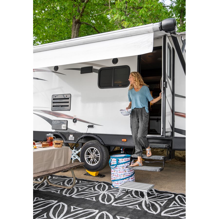 The Camco Curved Leveler is a simple way to level your vehicle by giving a tire up to 4 Inch of extra lift. The honeycomb design makes the leveler lightweight but durable. The drive-on curved design allows you to only drive on to as much height as needed, then chock the leveler at the exact right height. The included chock has non-slip rubber grippers on the bottom.