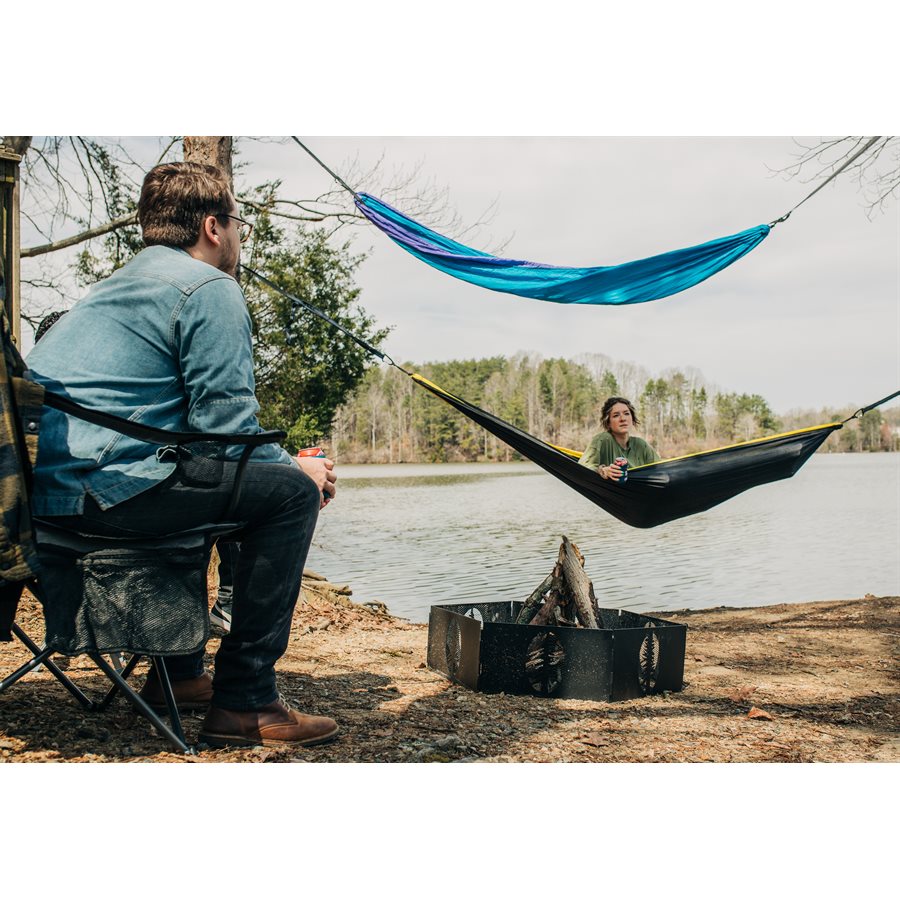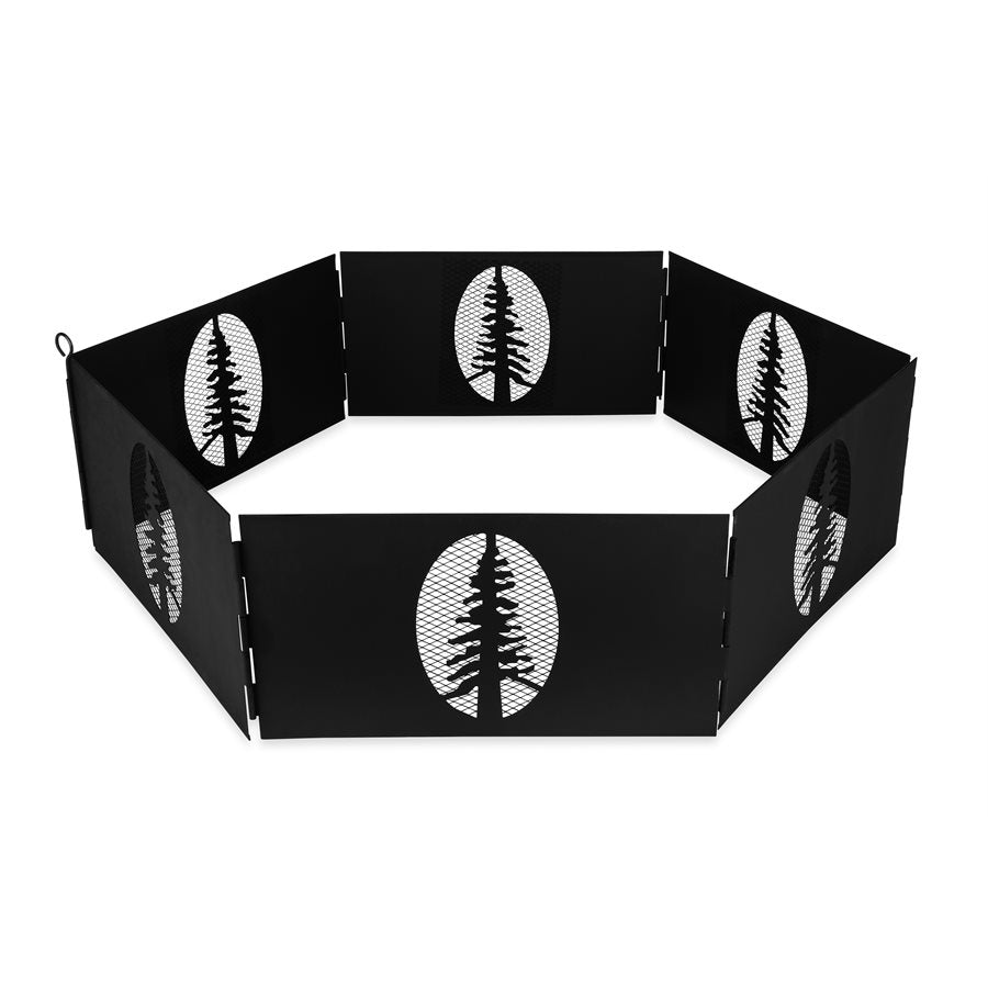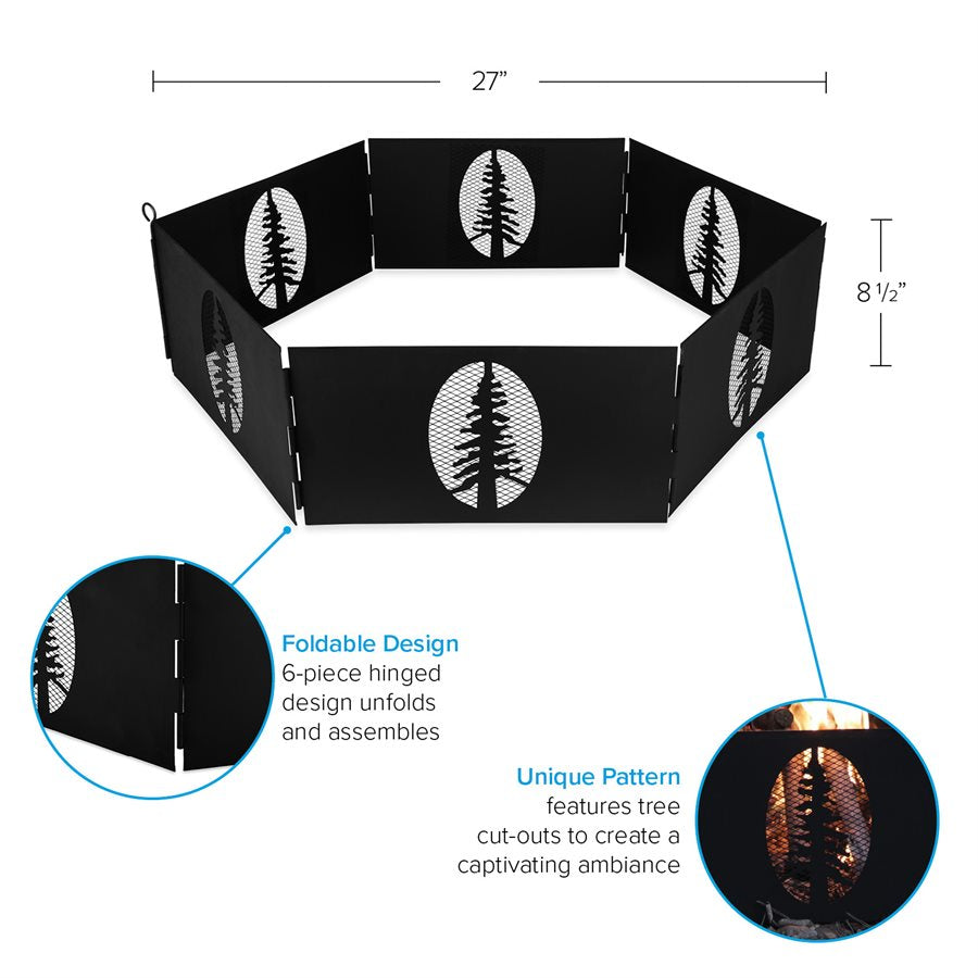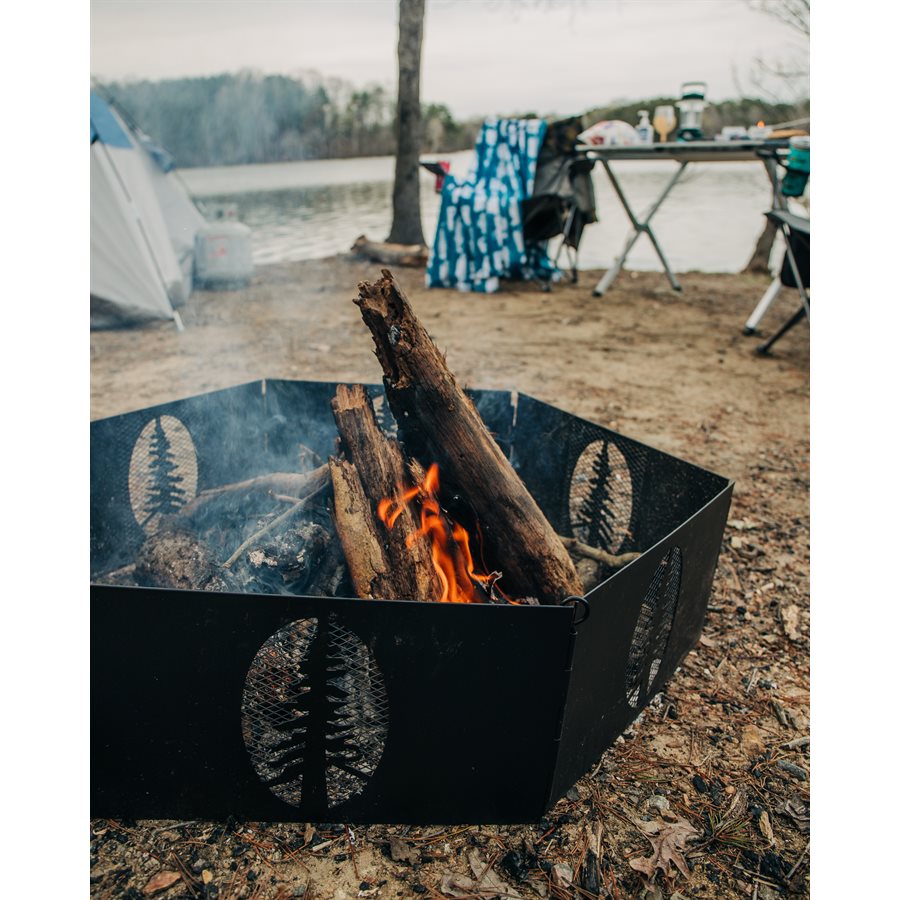 Safely contain your campfire with Camco's Portable Campfire Ring. The large, 27 Inch-wide, 8.625 Inch-tall steel ring will accommodate your natural wood-burning fire. Unfolds and assembles easily with no tools required. Tree cut-outs create a captivating ambiance. Includes a storage bag for easy transportation.