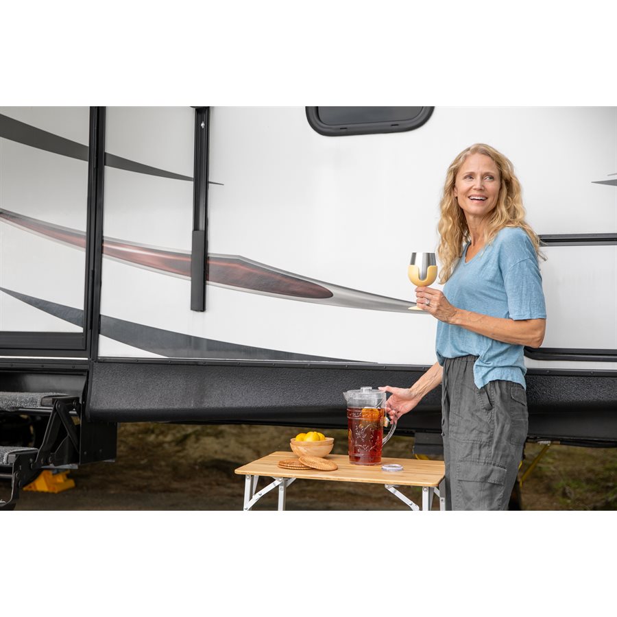 Camco’s Wine Tumblers are a great addition to any campsite, tailgate or party. These ultra-durable tumblers are made with kitchen grade 18/8 stainless steel and the double walls vacuum insulate your beverage, keeping it hot or cold longer. The tumblers have a flat bottom, so they can be used with or without the colorful stems. The stems can be used to color code drinks, and help keep track of whose drink is whose. The lid is BPA free and has a fully sealing gasket to help maintain beverage temperature and prevent spills. Hand wash only.