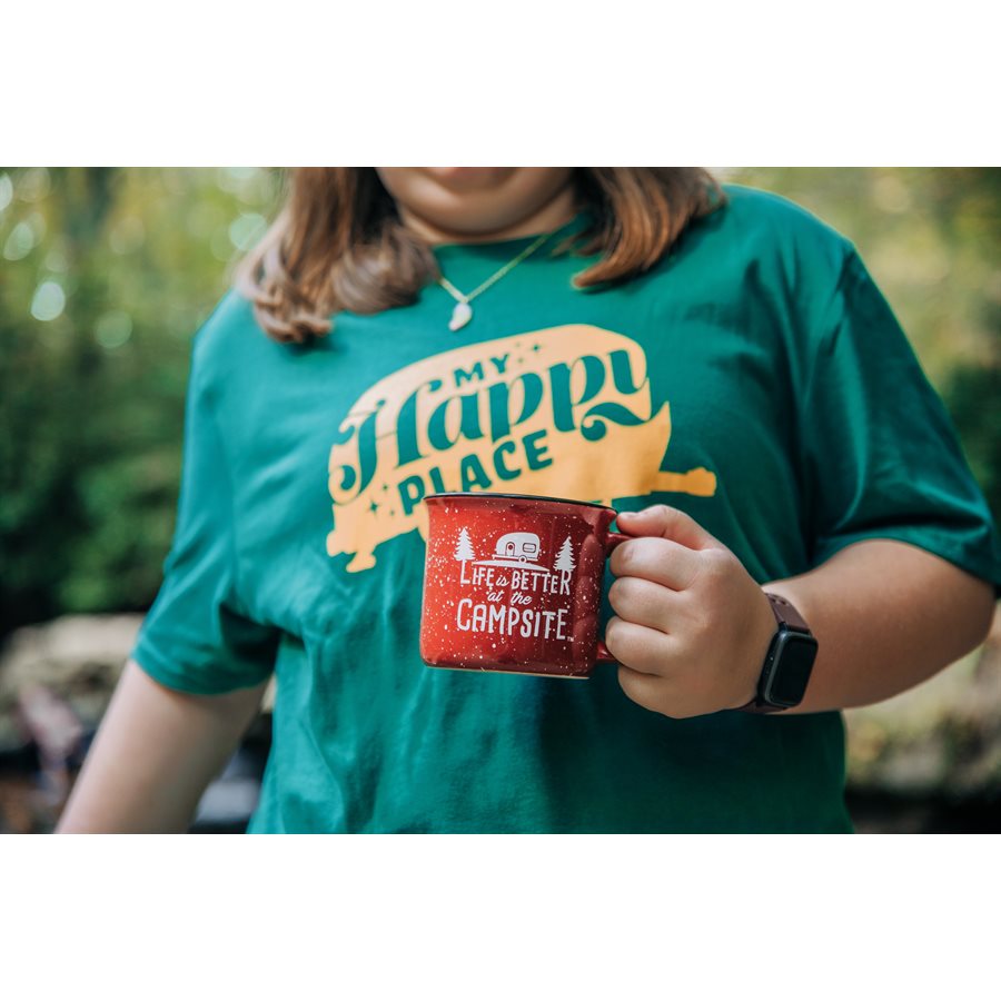 Drink your coffee or tea from this mug to show your love of the campsite whether you’re home or outdoors! These ceramic mugs are microwave and dishwasher safe.