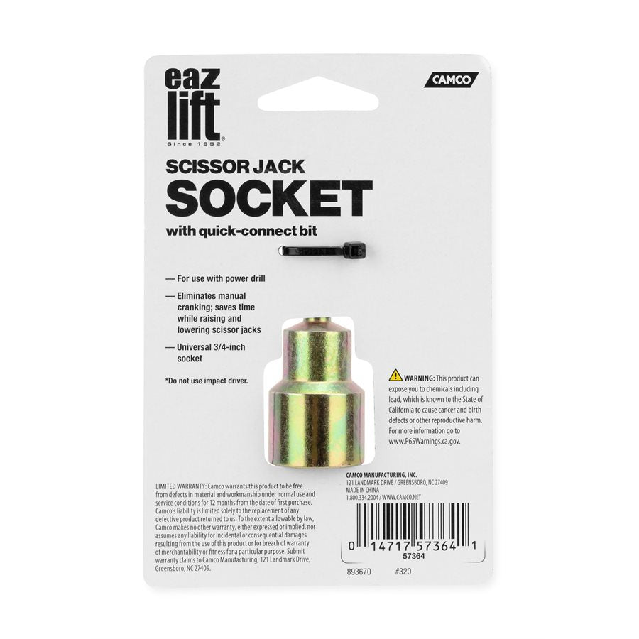 Significantly reduce the amount of time it takes to raise and lower scissor jacks with Camco’s Quick Connect Scissor Jack Socket. There is no more back strain using time-consuming hand cranks, simply snap the socket into the 1/4 Inch quick connect hex chuck of your drill and let the power drill do all the work. You can also use a common 1/4 Inch hex extension for extra reach. It is especially convenient in inclement weather when you just want to get back inside. The Camco Quick Connect Scissor Jack Socket is forged in one piece from carbon steel, so it is durable and meant to last a lifetime. It is zinc plated to provide protection against corrosion.