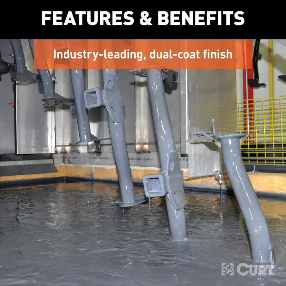 Toting your mountain bikes to your new favorite trail. Taking the kayaks out for a quiet day on the water. Packing the car for another weekend camping trip. Don't leave anything behind; Bring It® with a CURT trailer hitch. CURT class 1 trailer hitches are the perfect way to add extra storage space to your vehicle for all events, activities and adventures. For compact cars, sedans and crossovers, a class 1 hitch provides a functional rear receiver tube for attaching a hitch-mounted cargo carrier or bike rack or for towing a light-duty trailer. Class 1 receiver hitches make it easy to pack the things you want without having to cram the trunk or even the backseat full of cargo. This hitch is rated to tow up to 2,000 pound gross trailer weight and 200 pound tongue weight. This makes it an excellent choice for any cargo carrier or bike rack as well as a variety of lightweight trailers. It features a 1-1/4 Inch x 1-1/4 Inch receiver tube to accept a ball mount or other trailer hitch accessories. The hitch receiver tube also has an open back to allow for easy cleaning as needed. To ensure the safety of you and your passengers, as well as your fellow adventurers on the road, each CURT trailer hitch has been stringently tested in accordance with SAE J684. We maintain a dedicated Engineering facility near Detroit, MI - the heart of the automotive industry - to test all of our hitches to strictest safety standards. Our in-house testing technology allows for real-time, on-vehicle testing, placing our hitches under the same stresses present in actual towing conditions. This gives us the utmost confidence in each trailer hitch we make and provides you with a dependable tool to freely pursue your passions.