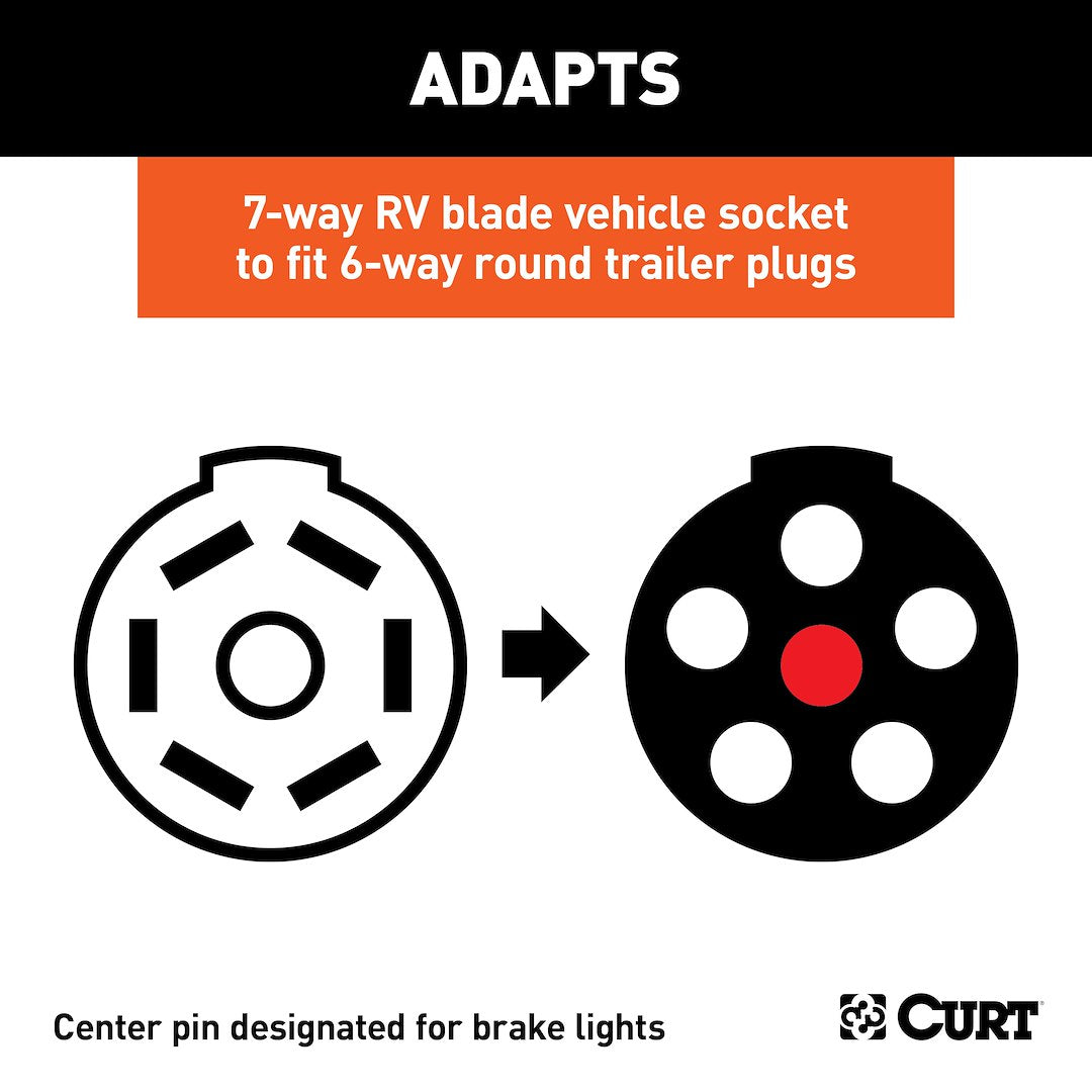 - Adapts A 7 Way RV Blade Vehicle Socket To Fit 6 Way Round Trailer Plugs