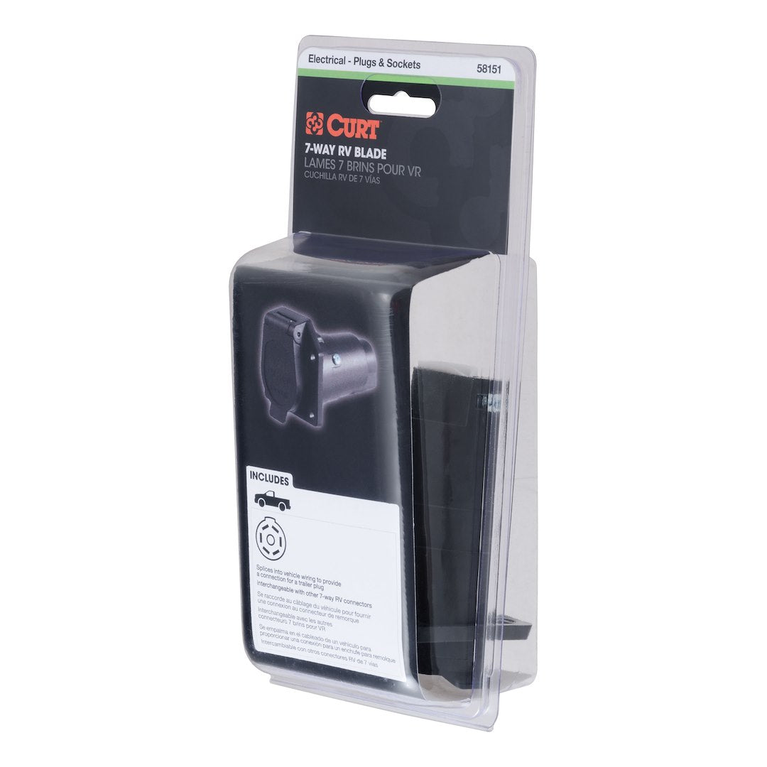 CURT electrical connectors are designed and manufactured to give you a reliable connection every time you plug in your trailer. This 7-way round RV blade connector is designed to supply power for tail lights, turn signals, electric trailer brakes, a 12-vo