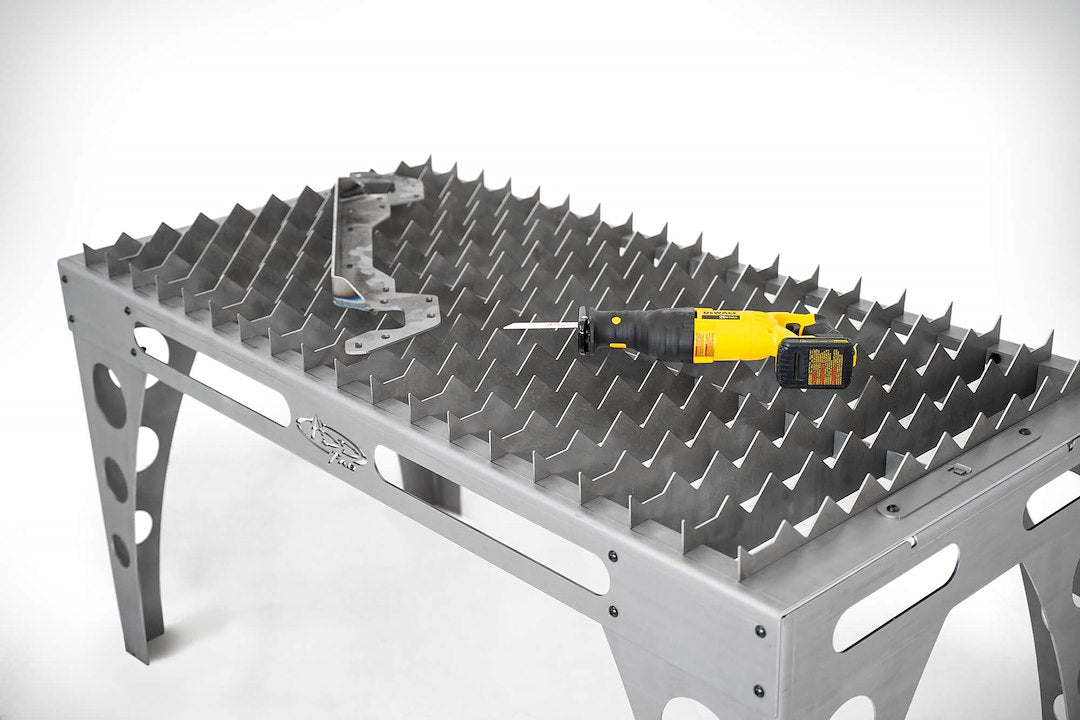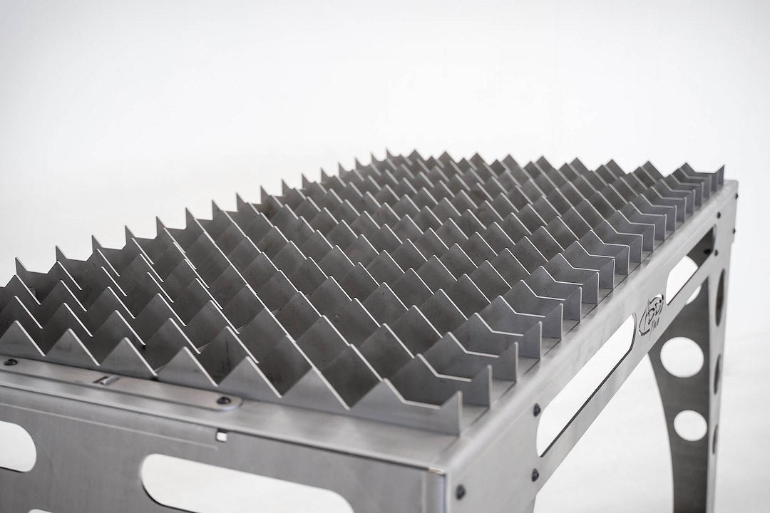 ADD has always been a leading name in fabricated parts but now we want to help you fabricate your own. With a series of pointed slats, the sheet metal cutting bench allows you to cut through your metal without having to hang it off the edge of a bench. The legs are made from 3/16 Inch steel, allowing it to handle heavy weights with ease. With a 6 feet X 3 feet working surface, you can tackle any project large or small. If you want a quality bench that will last for years, look no further than ADD. Each table is proudly made in America.