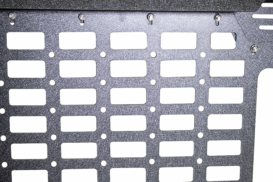 Brace yourself and your Tacoma for possibly the single most MUST-HAVE aftermarket part! Our Chase Rack takes your stock Tacoma and transforms it into a stylish MIL-SPEC, offroading powerhouse! With the potential to weave any tool, bag, or container onto the MOLLE window, you can clean up and organize your bed to max out your space efficiency while out on the trail.