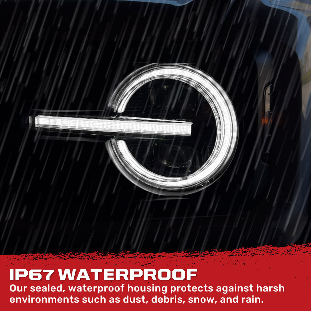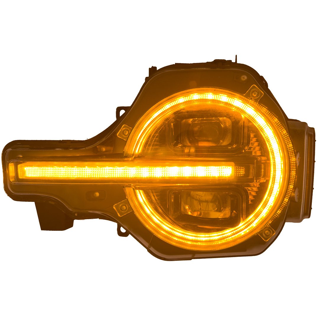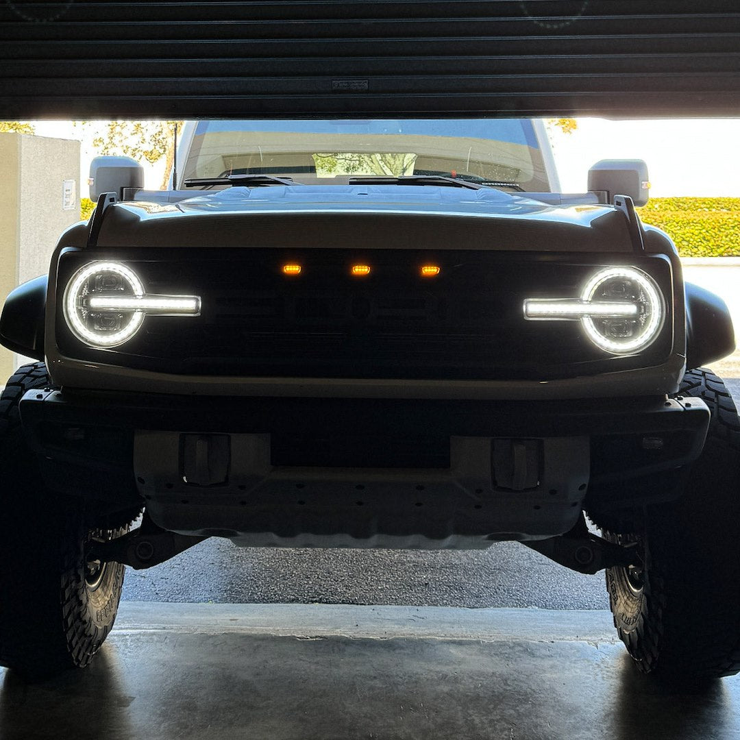 RECON's Ultra High Power LED Projector Headlights, featuring ultra-high power smooth White OLED daytime running lights with start-up lighting sequence, scanning switchback high-power amber LED turn signals, and a sleek smoked lens design. These headlights not only greatly enhance the appearance of your truck but also significantly improve driver visibility. With easy installation and compatibility your Ford Bronco will stand out on the road. RECON Full LED Projector Headlights with projector beams offer ultimate visibility on or off road. These LED projector headlights are built to last made from military-grade reinforced ABS plastic with impact-resistant housing. They boast an IP67 waterproof rating, ensuring protection against dust, dirt, water, and snow, and are UV-treated to guard against direct sunlight exposure. Designed to fit perfectly into the OEM factory-installed housing, these headlights are straightforward to install, saving you time and effort. Upgrade your truck’s lighting system quickly and easily, and start enjoying the enhanced performance and modern style right away.