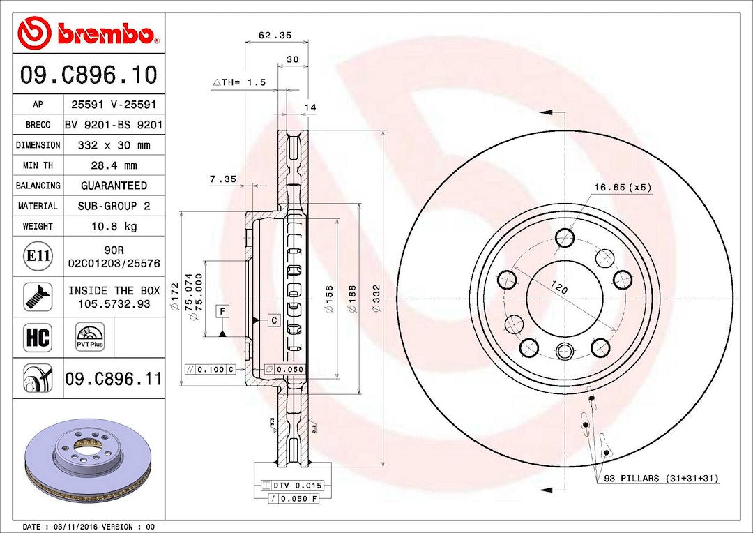Brembo's UV Coated rotors are developed as direct replacement that meets or exceeds OEM specifications. Environmentally friendly, the solvent free UV coating offers superior protection of the disc, including braking plate surfaces. High Carbon cast iron, where applicable, minimizes noise and vibration and provides maximum performance and enhanced driving comfort. Included with the UV Coated rotors is a fixing screw kit with all the necessary hardware for simple and worry free installation. New intelligent marking location show part number and the minimum thickness. In order to optimize and restore braking performance rotors and pads should be replaced together. Pair your UV Coated rotor with Brembo’s NAO/Ceramic or Low Met brake pad formulations. Brembo, the most trusted brand in braking.
