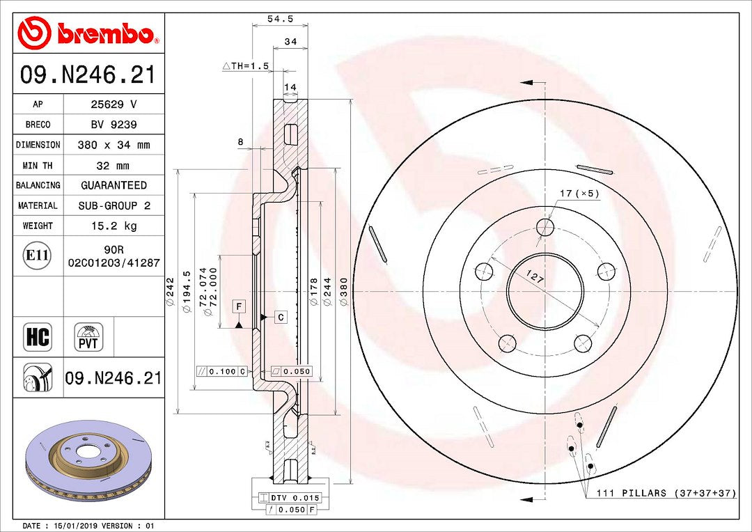 Brembo's UV Coated rotors are developed as direct replacement that meets or exceeds OEM specifications. Environmentally friendly, the solvent free UV coating offers superior protection of the disc, including braking plate surfaces. High Carbon cast iron, where applicable, minimizes noise and vibration and provides maximum performance and enhanced driving comfort. Included with the UV Coated rotors is a fixing screw kit with all the necessary hardware for simple and worry free installation. New intelligent marking location show part number and the minimum thickness. In order to optimize and restore braking performance rotors and pads should be replaced together. Pair your UV Coated rotor with Brembo’s NAO/Ceramic or Low Met brake pad formulations. Brembo, the most trusted brand in braking.