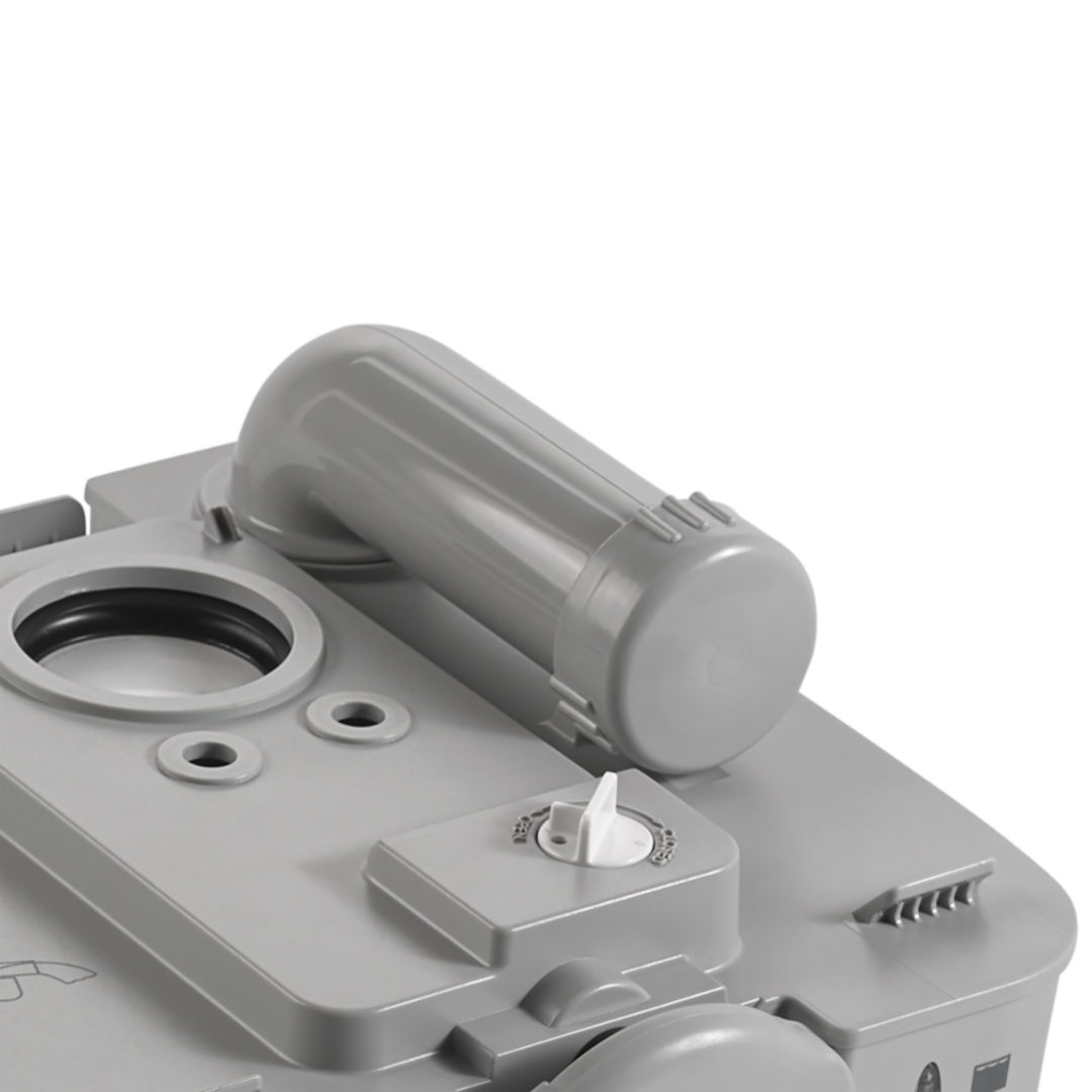 A portable and convenient lightweight toilet that is perfect for smaller vehicles and tents due to the unique space-saving design. The push-button technology makes it easy to use and will always ensure a powerful and hygienic flush with less pump and less mess.