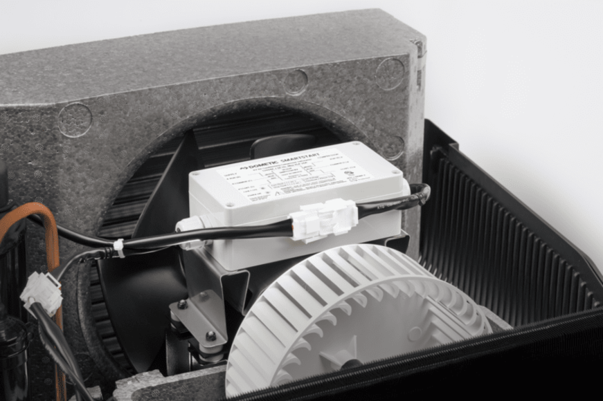 The Dometic SmartStart accessory for RVs is a soft starter that reduces AC start-up power demand by as much as 75 Percent. This innovative device enables air conditioners to run on a generator as small as 2,000 Watt, helping to eliminate the need for shore power and making boondocking easy. Specifically developed for RV air conditioners, it also makes it possible to use an inverter in a solar application without faulting. With the SmartStart AC Accessory, RV owners have the option of moving to a smaller generator, saving weight and money while enjoying quieter AC startups at any time of day or night.