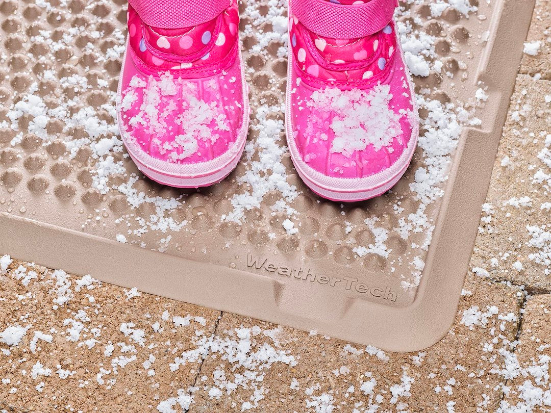 An outdoor mat is never JUST an outdoor mat when it is designed, engineered and manufactured by WeatherTech(R). We took the same technology that we use for our precision engineered automotive accessories and developed a premium OutdoorMat™ to fit the needs of busy doorways. Made from 100 Percent recyclable resin, the WeatherTech(R) OutdoorMat™ features a specially designed scraper edge combined with semi-rigid cones to remove debris from shoes. Perimeter vents surround the edges to allow liquids to drain from the mat with ease. Measuring 39 Inch x 24 Inch, its robust design enables the OutdoorMat™ to stay-put and lay-flat. The attractive appearance of the WeatherTech(R) OutdoorMat™ makes it the perfect and exceptionally functional accessory for any doorway - from busy businesses to a household of outdoor lovers, it will stand the test!