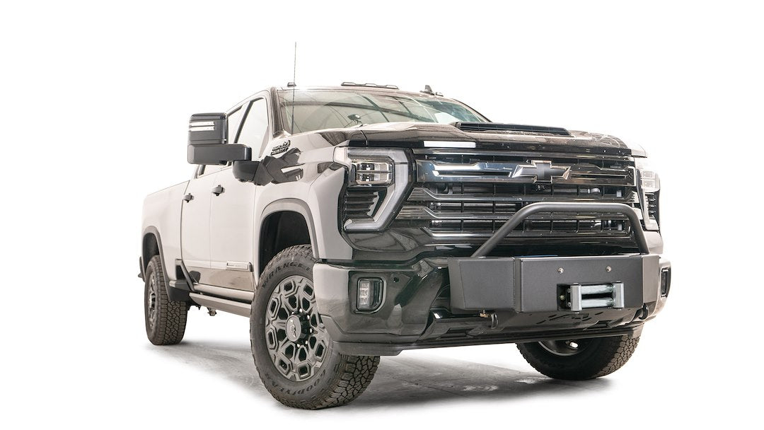 Fab Fours Winch Mount, a one-piece fully welded bumper designed for hardworking truck owners in search of uncompromising strength and functionality. Crafted with precision in the USA, this remarkable bumper combines robust construction with innovative design to tackle tough challenges with ease. Easy to install, slipping through the factory tow hook slots straight to the frame. Available in Full Guard, Pre-runner or No Guard options that accommodates a 16,500 Pound winch or smaller. Built to withstand the demands of work or off-road adventures, the Fab Fours Winch Mount offers exceptional protection, functionality, and ease of installation.