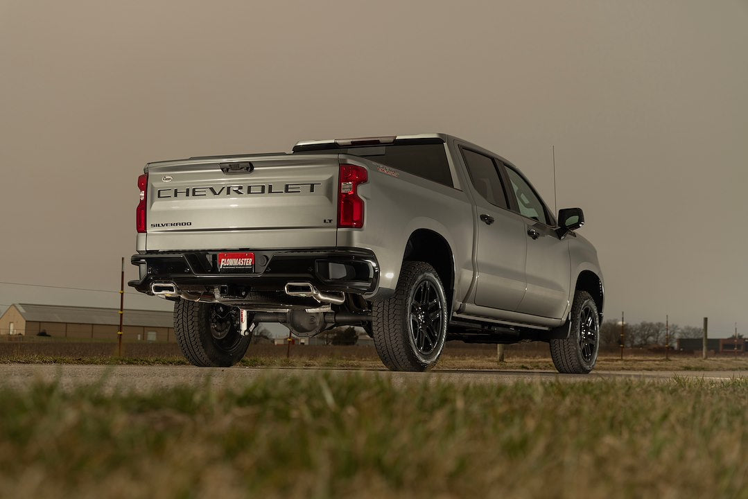 Flowmaster's® Signature Series Cat-back exhaust system for the 2024 to 2025 GM 1500 trucks with the 6.2 liter engine is a great way to customize your Silverado or Sierra to your personality. This performance exhaust system fits both 2/4 Wheel drive models and is manufactured from 304 stainless steel for years of trouble-free service and performance. Features include a 3-1/2 inch inlet pipe leading into a specialty tuned Signature Series style muffler for great sound and maximum performance. This cat-back system has dual 2-1/2 inch mandrel-bent tailpipes that exit in the bumper cut-out locations and retains the factory exhaust bezel for a clean look. Included in this cat-back system is active valve control with an integrated turndown. This allows you to control the factory valve from the dash with the different drive modes for full control of your sound level. Run the valve closed in the Normal drive mode, or open the valve in Sport or Off-Road mode for maximum sound. Max dyno gains of 15 horsepower and 13 pound-feet at the rear wheels deliver power you can feel. These systems use all the factory hanger locations and connections for an easy installation that you can do at home. Kit include installation instructions and all necessary hardware.