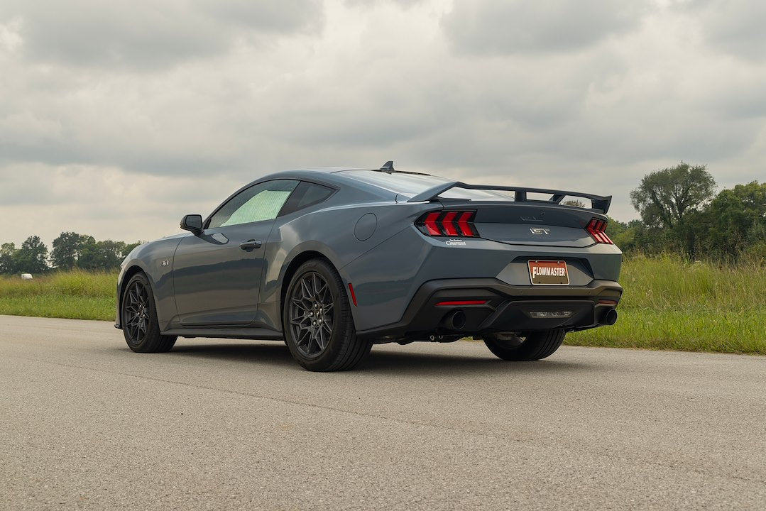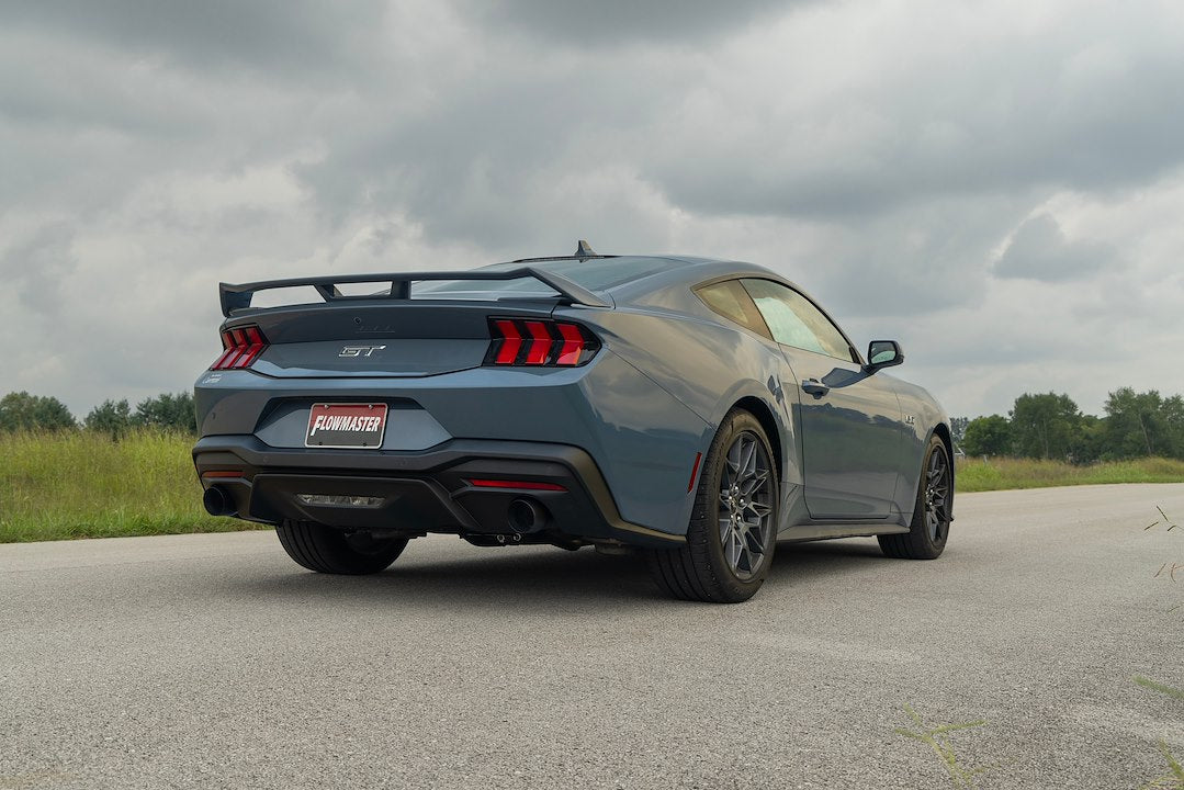 The Flowmaster Outlaw® Cat-back exhaust system for the 2024 Ford Mustang GT 5.0-liter is perfect for the person looking for a very aggressive exhaust tone inside and outside the vehicle, with all of the performance benefits that you would expect from Flowmaster®. This easy to bolt-on emissions-legal system features dual 3.0-Inch stainless steel mandrel-bent tubing and our exclusive Scavenger® Series X-pipe for a deep unique tone and maximum power. Other features a pair of our race-proven Outlaw Series mufflers finished off with quad 4.00-Inch black ceramic coated tips for a modern look. Like all Flowmaster systems, the benefits features improved throttle response, power and mileage. Designed for an easy fit, this system features all necessary parts, hardware and installation instructions. This system does not fit models with the Active Performance Exhaust option. Fits both coupes and convertibles.