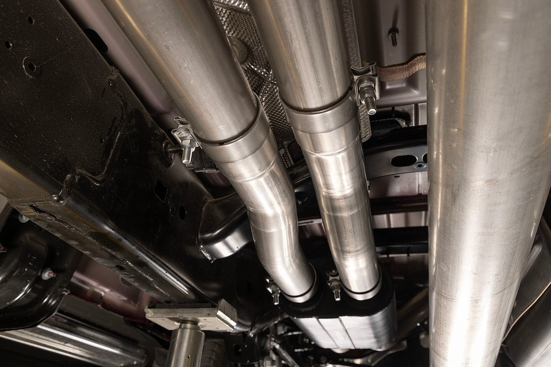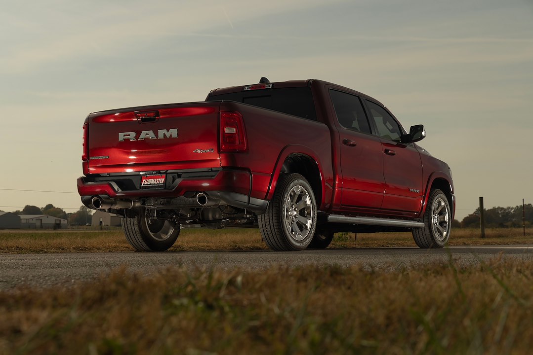 Flowmaster's® American Thunder Cat-back true dual exhaust system for the 2025 RAM 1500 with the 3 liter Standard and High Output engines gives you a great way to customize your RAM 1500 to your personality. This performance exhaust system fits both 2/4 Wheel drive models and is manufactured from 409 stainless steel for years of trouble-free service and performance. Features include dual 3 inch inlet pipes leading into a custom tuned 409 stainless steel American Thunder series muffler for great sound and maximum performance. This Cat-back system includes Flowmaster’s exclusive Scavenger X-Pipe with our D-Port technology for maximum exhaust pulse velocity and helps to create a deep exhaust tone. The dual 3 inch mandrel-bent tailpipes exit in the stock location in the factory bumper cut outs with 4.5 inch black ceramic coated tips. Included in the tailpipe assemblies are tuned resonators that help maintain a comfortable experience in the cab. On Standard Output models this system turns the exhaust into a true dual style system like the High Output and RHO models. This will allow for better overall performance gains and will work better with any future engine modifications. Max dyno gains of 35 horsepower and 33 feet-pound at the rear wheels (HO models) deliver power you can feel. The system uses all the factory hanger locations and connections for an easy installation that you can do at home. Kits include installation instructions and all necessary hardware.