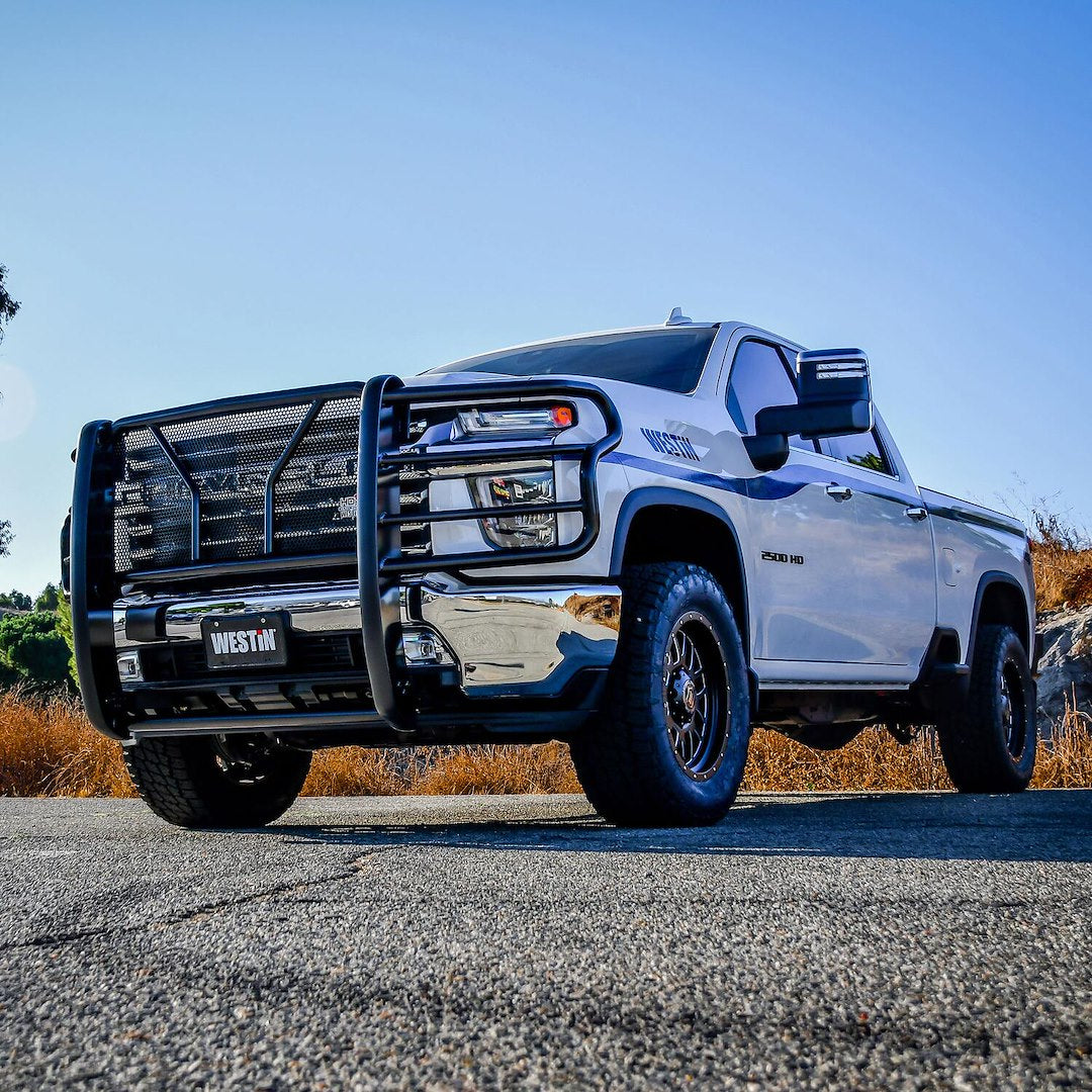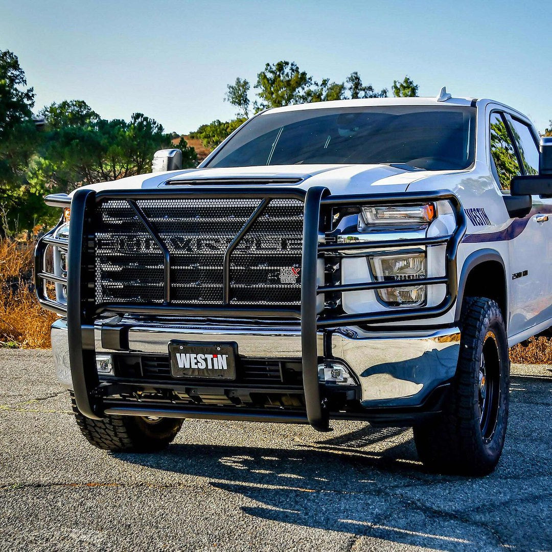 The HDX Grille Guard is the ultimate in extreme truck gear. It's a fully welded 1-piece grille guard that features full wraparound wings made of heavy-duty 2 Inch diameter tube. Uprights are finished and protected with extra wide rubber that is 1/8 Inch thick and 2-3/4 Inch wide resulting in a solid clean look. The full punch plate grille protects the vehicle's grille area.