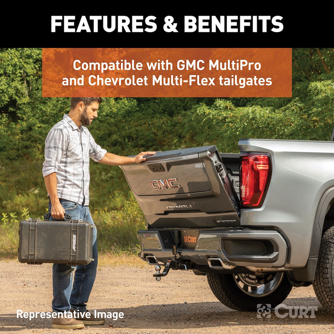 Save your Chevrolet and GMC tailgate from costly damage with the CURT tailgate sensor. The GMC Sierra MultiPro ™ tailgate and Chevrolet Silverado Multi-Flex ™ tailgate is an innovative new step in tailgate technology, providing a variety of benefits for pickup truck owners. When towing with your GMC Sierra or Chevy Silverado, it is important to protect your tailgate. A ball mount or other hitch accessory inserted in the receiver can become an obstruction for the inner tailgate operation. This hitch cap sensor is a tailgate saver, working in sync with the truck’s electronics to prevent the tailgate from folding down and being damaged by the hitch accessory.
