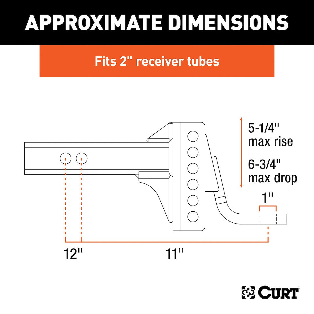 CURT adjustable channel ball mounts are not only built for tough jobs, but they are also engineered to offer smooth, quiet towing. Built into the adjustable shank is an anti rattle mechanism a rubber bumper that goes between the shank channel and the trailer ball attachment. This anti rattle bumper greatly reduces vibrations and noise coming from the coupling point, providing a smoother, quieter ride for the road ahead. In the world of heavy duty towing, harsh conditions and relentless exposure to the elements aren't uncommon. For this reason, the adjustable channel mount is finished with a highly durable carbide black powder coat finish. This helps withstand rain, snow, dirt and road salt, protecting the shank from rust and corrosion.