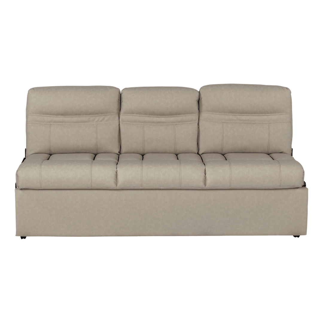 Enhance your RV decor and increase sleeping capacity with the Thomas Payne Jackknife Sofa by Lippert Components. You will fall in love with the rich upholstery and contrasting stitching that is not only beautiful but also easy to clean and maintain, perfect for those traveling with kids or pets. With a one easy motion the steel-framed Jackknife RV Sofa converts to a bed of high-density foam, and its steel spring seating supports promote comfortable and restful sleep.