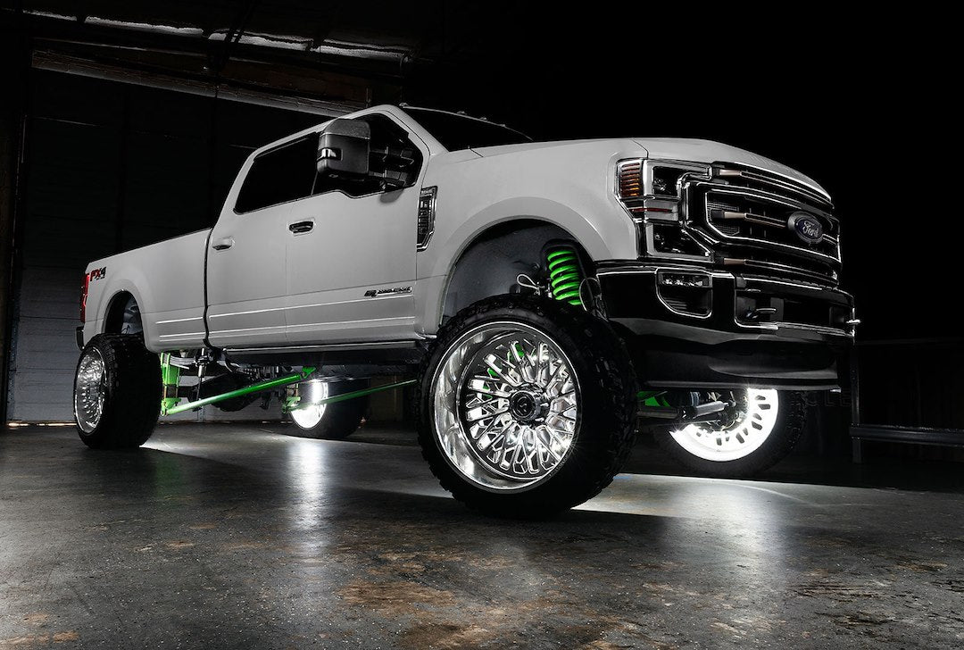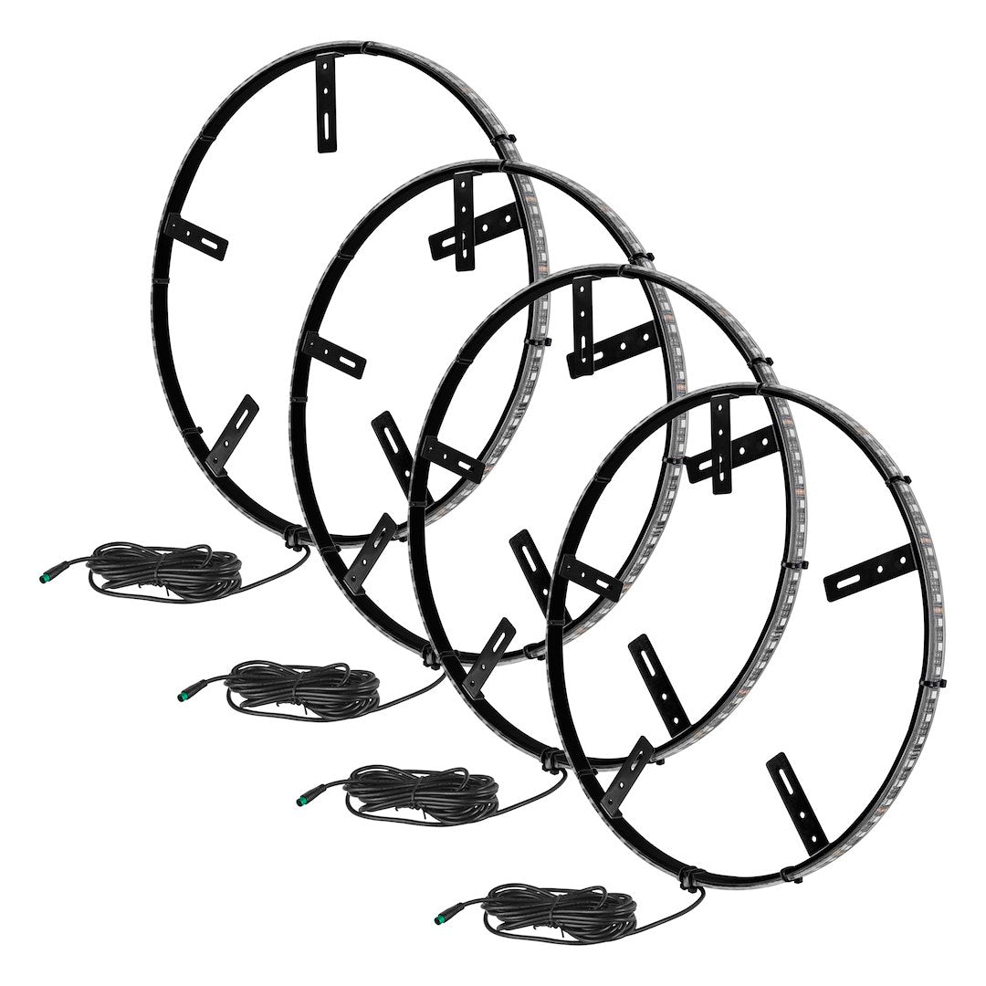 ORACLE Lighting illuminated LED wheel rings are an easy and effective way to light up the wheels on your car or truck. This head-turning lighting product consists of a set of (4) LED illuminated aluminum rings which install around the brake rotor and attaches to the brake dust shield. These can also be mounted to older vehicles with drum brakes. The effect is a large ring of light which accents custom wheels and stands out at events. Oversized 16 to 12 Inch diameter is the largest on the market and fits oversized brakes. This kit now features a TRUE white 6000K from separate white LEDs for a TRUE WHITE output for a Crisp and Clean white light. Change Colors, Control Brightness, access strobing patterns, and sync with music. Now featuring "Dual-Control" allowing the user to use both the free Bluetooth Smartphone App control PLUS the provided Wireless Remote Control.