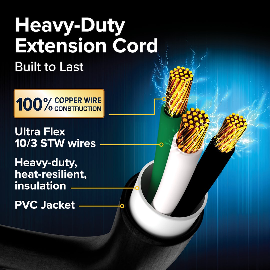 All cords feature the patented Power Grip handles for ease of use. Each cord also Features a convenient carrying strap