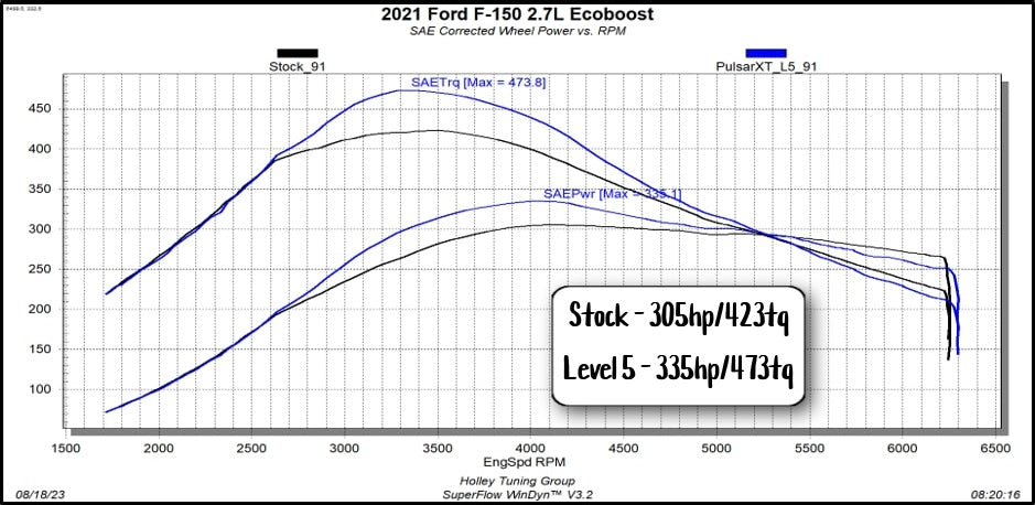 Pulsar XT is an all-new take on performance and calibration for your 2.7L and 3.5L Ecoboost Ford F150 and it's unlike any other device on the market. Pulsar XT is an innovative inline module engineered to keep your factory PCM untouched, leaving no trace in the system when removed for dealer service. Add up to 65 Horsepower/90 Feet-Pound torque to your Ford truck while improving drivability, throttle response and feature control. Enjoy Pulsar XT's shift-on-the-fly performance gains, with 5 power levels changeable through our wireless Bluetooth switch. Pulsar XT also offers full calibration adjustment through an innovative smartphone app that allows you to adjust your speedometer for larger tires and adjust pedal sensitivity to your liking. The intuitive mobile app also gives you control over TPMS settings, can disable your Auto Start/Stop, configure lighting controls, read and clear DTC's and more. The device also offers cold engine protection so no power is added until you're up to operating temperatures, keeping your engine safe. We've been tuning Ecoboost engines since their inception and Pulsar XT is the most advanced plug in module on the market offering more features than the competition at a lower price. Don't settle for less, or spend your hard earned cash on two or three different devices that still won't give you everything Pulsar XT can. You'll love the way your Ford F150 and Ford Raptor reacts with Pulsar XT, we can guarantee it.