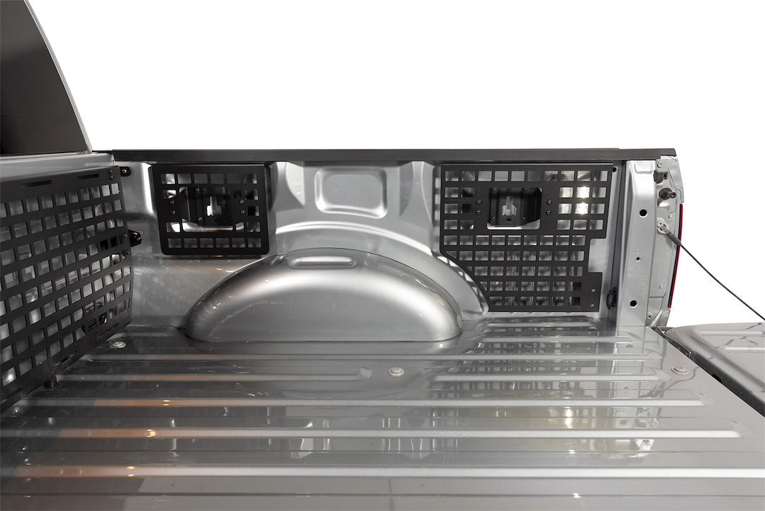 The Putco MOLLE Rack System is custom engineered to fit directly to each make and model using the existing OEM mounting points in the bed. The rack systems allow you to keep your gear organized, easily accessible and secure. They work with all MOLLE, PALS, Quick Fist, and many other gear strapping systems to hold your cargo in place on the roughest roads. Each fitment is designed with custom brackets and MOLLE panels engineered to be mounted directly to OEM mount locations. Our custom designs provide no cut and no drill installations which can be done in a matter of minutes. Works with most industry leading mounting accessories. MOLLE panel design accommodates not only standard MOLLE accessories that utilize strap lacing method but most any strapping mechanism as well.