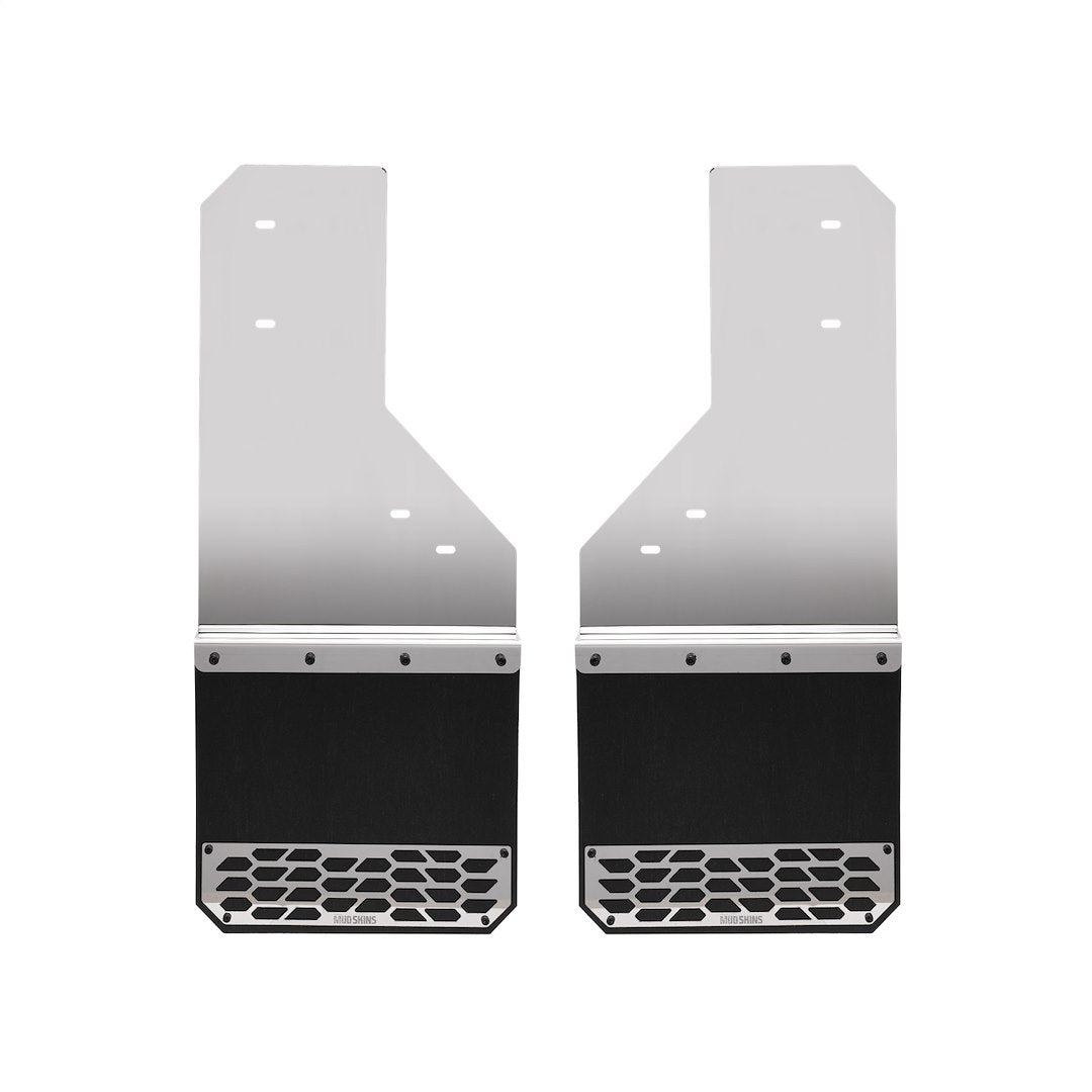 PUTCO’s New Hex Shield ™ Series Mud Skins ™ are custom-fit and delivers protection from rocks, mud, snow buildup and other debris your truck kicks up. This set of mud flaps are very easy to install and only takes minutes. Be sure to protect and stylize your vehicle with the Hex Shield Series Mud Skins. They come in your choice of polished stainless, brushed stainless or black HDPE finishes.