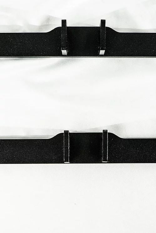 EXR Jeep JLU 4 door Soft Top Mid Brackets Kit. This kit is used in conjunction with a 48 Inch O'Land crossbar to install the bar UNDER the JLU 4 door factory soft top. Bar fits perfectly under top when top closed and sits 1/2 Inch above the center factory overhead speaker housing when top open.