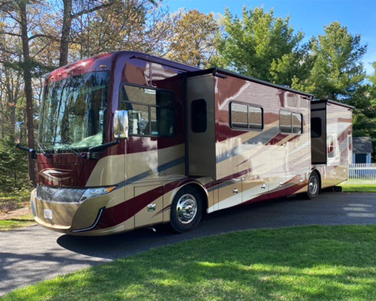 Our SnapPad HiWay Plus 4-Pack includes two different sized pads: 8 Inch round for the front jacks and 10 Inch round for the rears. This configuration is found mostly on Class A Motorhomes. Roll out with the world’s only permanent jack pad and make your leveling system truly automatic.