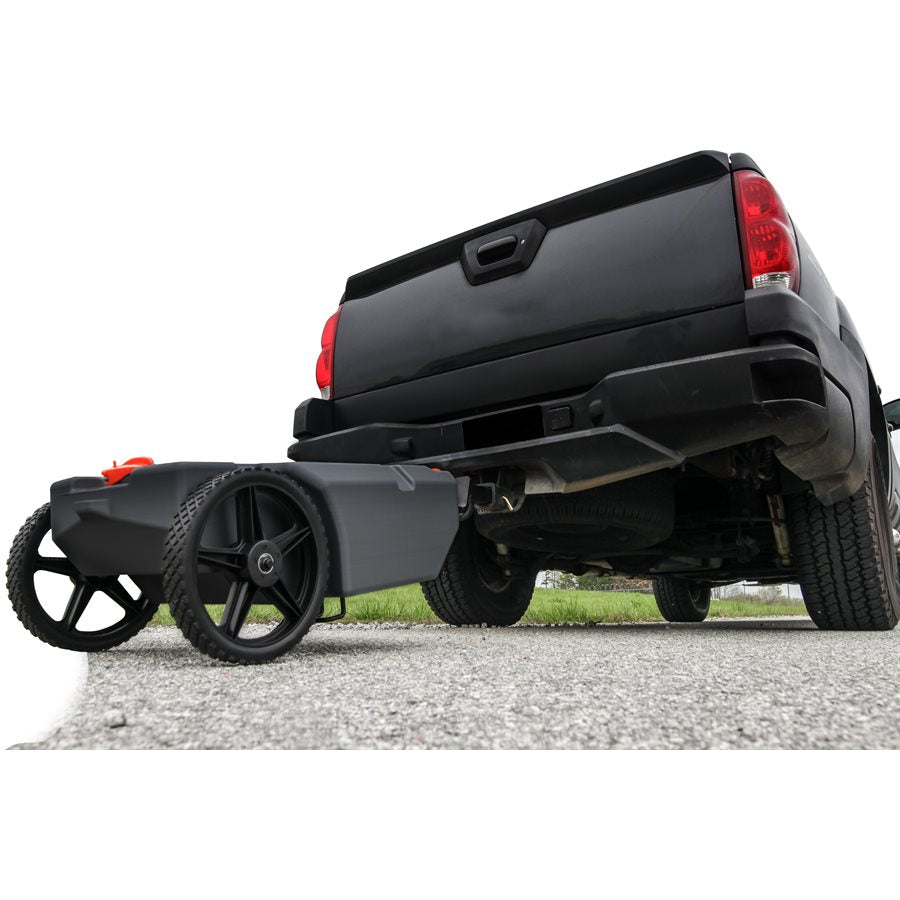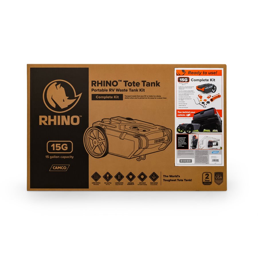 Ready-to-use kit equipped with everything needed to transport waste from your RV or trailer to a dump station when you’re parked too far away for a sewer hose; plus accessories to clean, maintain and store the tote tank when not in use. Large, heavy-duty, no-flat wheels with bearings make transport smooth and easy and removable steel tow adapter allows you to easily roll the tote tank like a suitcase, or tow it slowly behind a golf cart or truck. Integrated ladder hook hangs on RV ladder when not in use and the body of the tote tank features grooves to securely strap it in place.