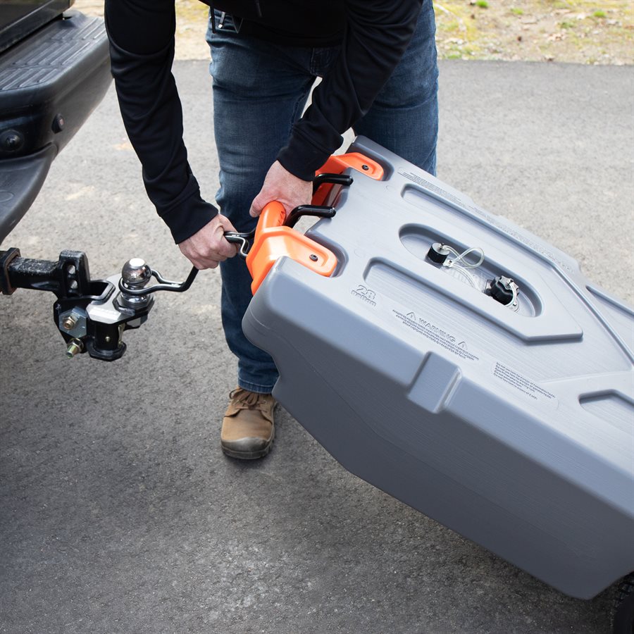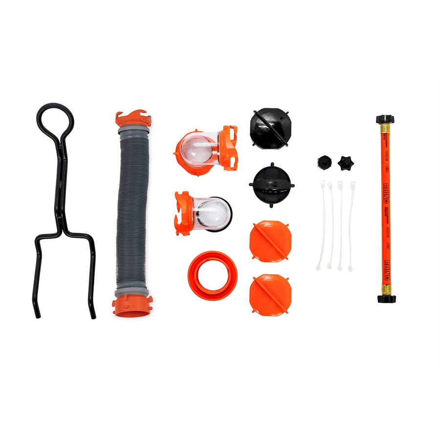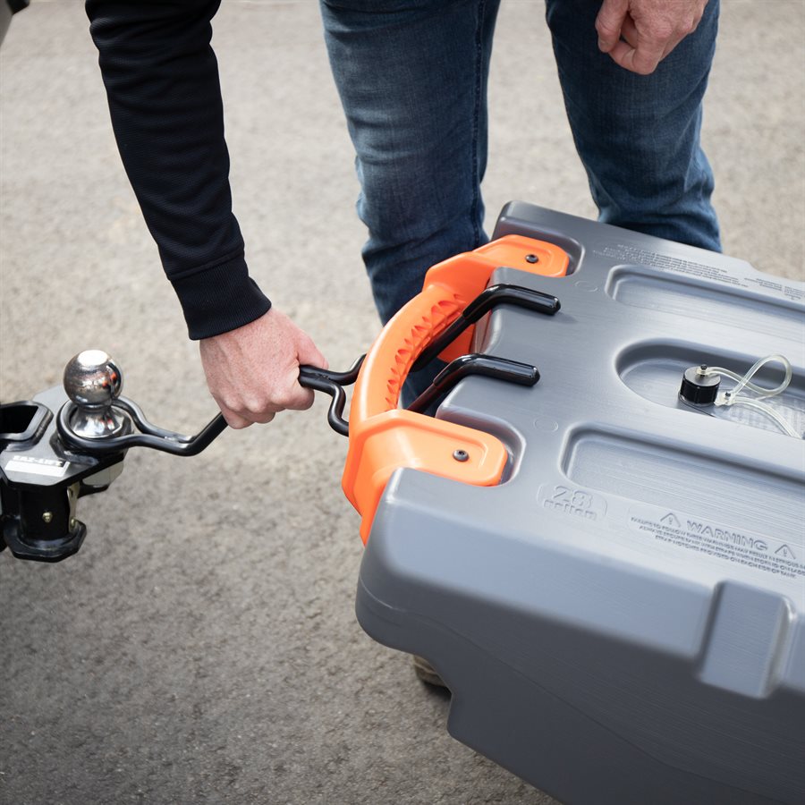 The Camco RHINO Tote Tanks are the durable, everything-you-need tote tank kit to fill, empty, clean, store and tow your tote tank when you’re too far away from a dump station to use a sewer hose. This tote tank is rugged, heavy-duty, and designed with the ease of use in mind. Large, heavy-duty, no-flat wheels with bearings make transport smooth and easy and removable steel tow adapter allows you to easily roll the tote tank like a suitcase, or tow it slowly behind a golf cart or truck. Integrated ladder hook hangs on RV ladder when empty and not in use and the body of the tote tank features grooves to securely strap it in place.