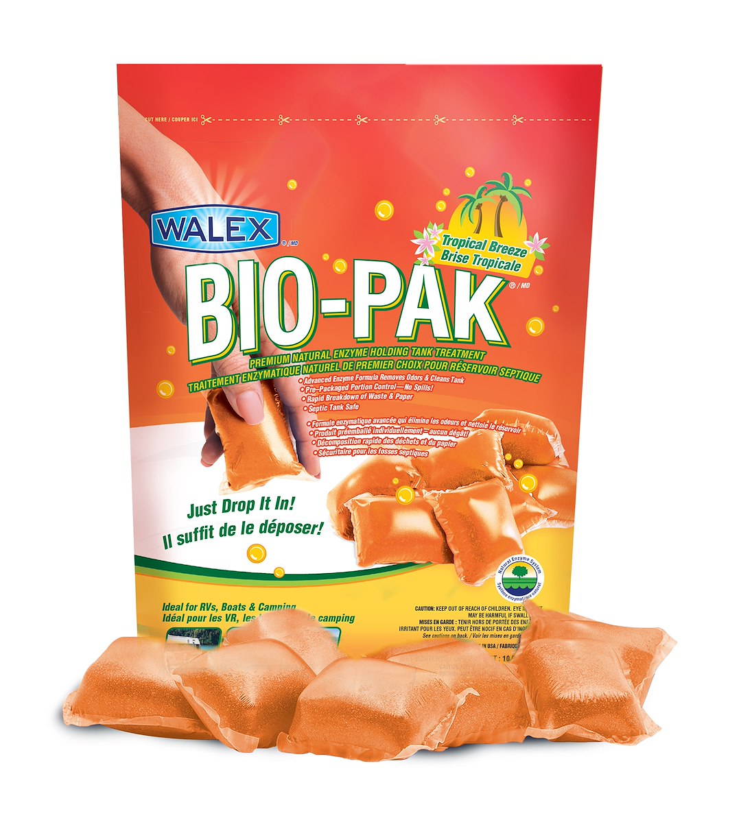 Bio-Pak provides portion control and is easy to use with no messy liquids, just drop it in. The environmentally friendly enzyme formula starts working immediately to control odors and break down solids in the waste tank. Liquefies all types of toilet paper, eliminating the need for special toilet paper. Continued use ensures that pipes, valves and seals will be trouble-free.