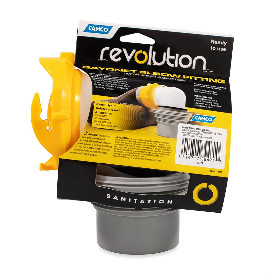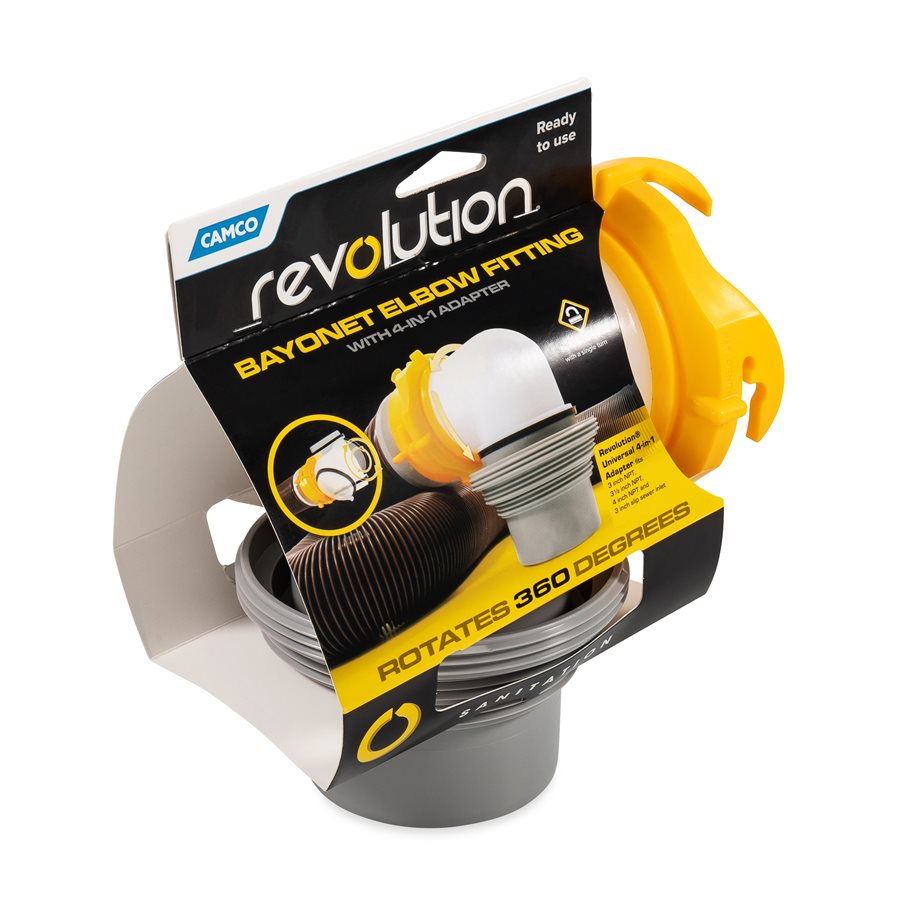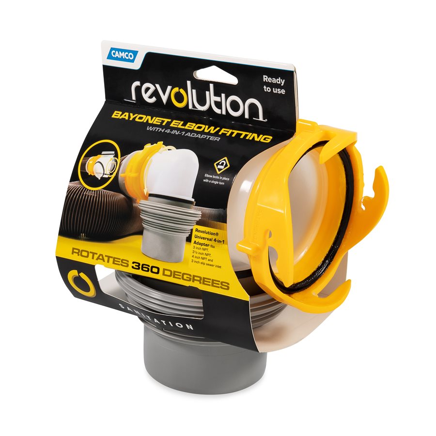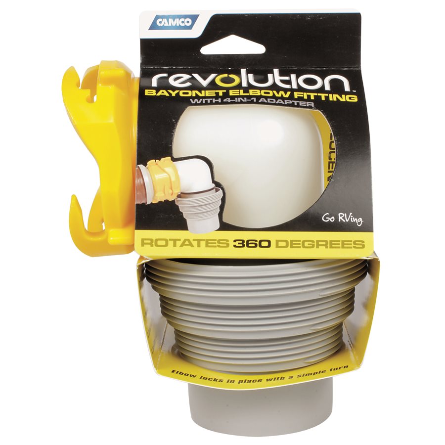 Takes the trouble out of connecting to dump stations. Features built-in gasket for an odor tight connection. Translucent elbow detaches from 4-in-1 adapter to fit into 4 Inch RV bumper. Patent pending.