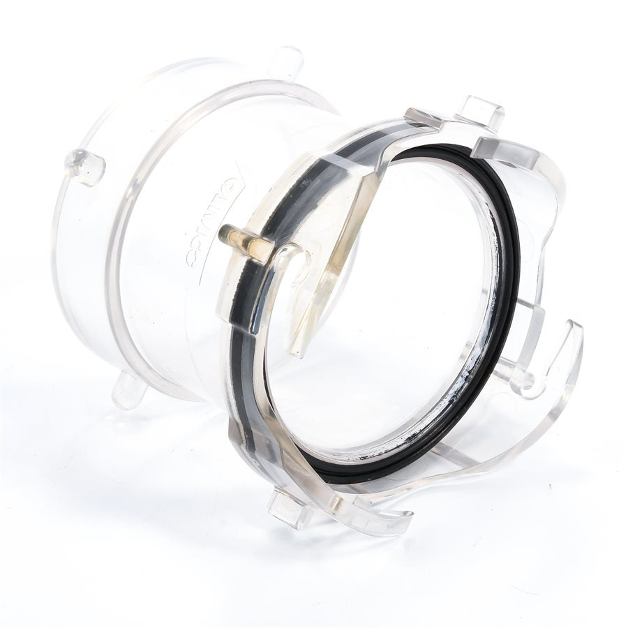 Camco 3.5 Inch RV Clear Sewer Hose Adapter attaches directly to the RV's sewer connection, extending the sewer hose outlet for easier, more convenient hose connection. The clear adapter allows to see when the tank is fully rinsed. It is non-restrictive and allows free flow of water.
