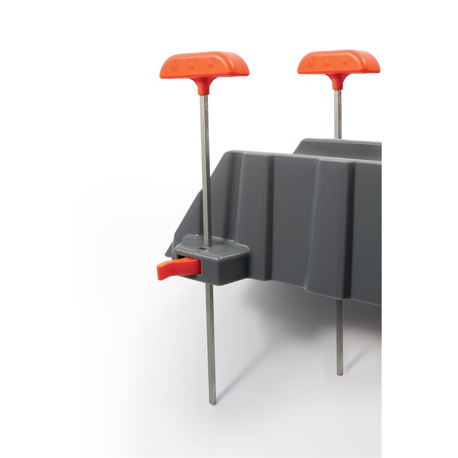 The Camco Adjustable Sewer Hose Support Kit is an adaptable sewer hose support that elevates your sewer hose to keep waste moving downhill. It features 6 independent troughs that cradle the sewer hose to keep it in place, can be adjusted for height, and can be set-up to make turns to avoid an obstacle or go over a curb. The legs of the Sewer Hose Support Kit can be staked into the ground for added stability, but they don’t need to be staked- they can also work on hard surfaces like concrete. The troughs measure 30 Inch long and nest for easy storage when not in use. Provides support for up to 20 Foot of sewer hose length.