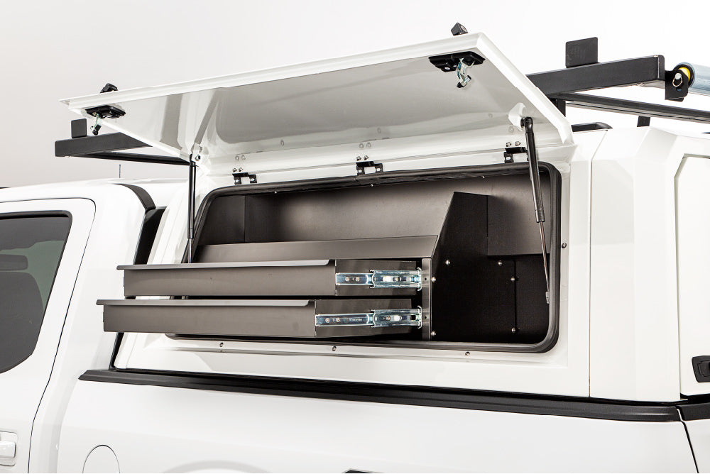 Manufactured using automotive-grade, tough-as-nails stainless steel, the SmartCap EVOc is a brilliantly engineered commercial truck bed cap system. The steel side doors and optional Security Screen mesh provide incredible protection for your truck bed. Outfit your EVOc with SmartComponents, to build the ultimate commercial truck based on your cargo management needs. SmartCap’s advanced 5-piece modular design is ideal for your commercial or fleet needs. Simply purchase SmartCap EVOc online, and your SmartCap ships directly to your home or business. When combined with the stainless steel doors, the rear window optional Security Screen mesh adds an extra layer of protection for your SmartCap EVOc. SmartCap Components let you build the ultimate commercial truck. From a Drawer-Bin to the Half-Bin or Full-Bin, Load Bars, Roller Rack, and more. Now you can easily organize your commercial truck bed exactly how you want it. The EVOc utilizes an innovative sealing method that when properly installed makes the SmartCap weatherproof. Come rain, snow, high winds or freezing temperatures your cap will remain watertight and your cargo will stay dry. The EVOc lets you easily convert your commercial rig to a conventional pickup. This SmartCap can be removed in under 15 minutes, giving you the ability to haul taller loads. For all full-size SmartCap applications, we've designed a portal window that allows your truck's third brake light to illuminate the bed. Sleekly designed into the top of the SmartCap, our integrated Roof Rails allow you to utilize other Components for mounting rooftop carriers, signage, ladders whatever your business requires. Plus, if you already own a rack system, no problem. SmartCap's Roof Rails are universally designed to mount just about anything. SmartCap EVOc incorporates a high-mounted third brake light that's sure to help tailgaters keep their distance. Plus, you never know when you need to brake for hippos.