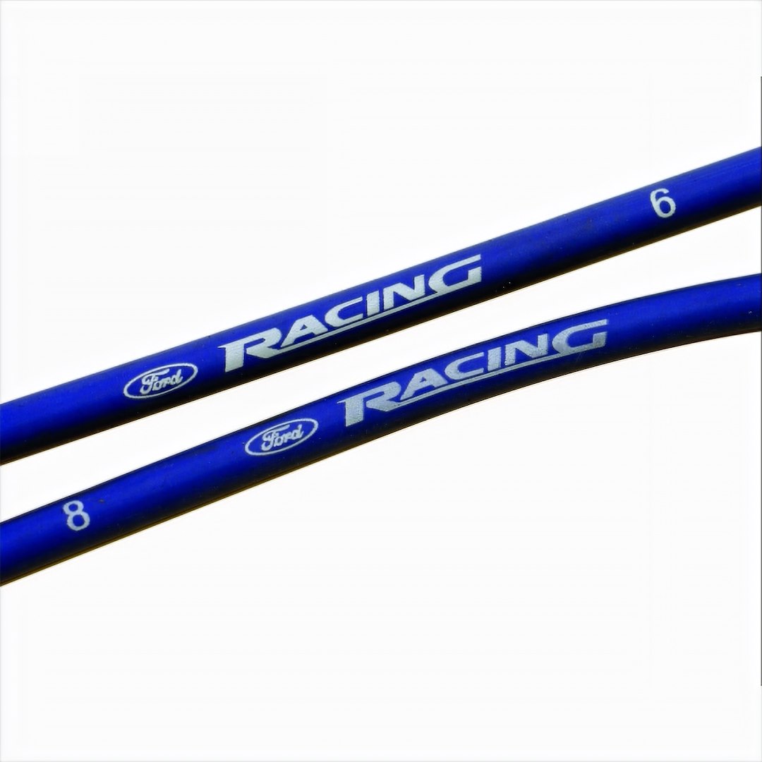 Wire-wound custom ignition wire sets feature low resistance for minimum spark loss. Silicone insulation and boots withstand high temperatures and voltage loss for minimum cross-fire and are highly resistant to fuels, oils and solvents. Long-life, tough stainless steel terminals for “post” type distributor caps. Comes with coil wire for socket-type coil and “Ford Racing” identification. Cylinder number appears on each wire.