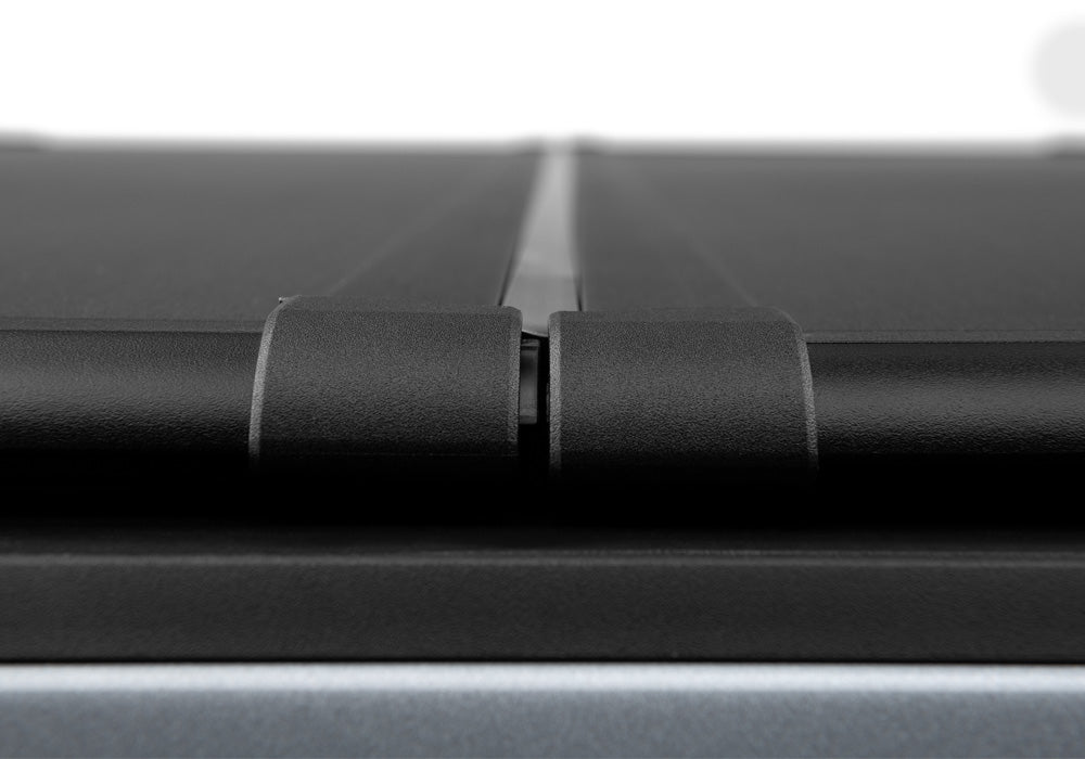 The TRIAD by UnderCover is a hard-folding truck bed cover featuring matte black panels for a sleek and innovative addition to your truck bed. Integrated perimeter seals protect your truck bed from the elements, while aluminum panels enhance the security of your truck bed and support up to 600 Pound of evenly distributed weight. The TRIAD has 2 riding positions in the fully open and 2/3 open position for convenience to haul and manage most any cargo. The TRIAD is fashioned with easy-to-use tailgate clamps allowing quick access to the truck bed. The TRIAD hard-folding cover comes completely assembled to provide a quick and easy installation.